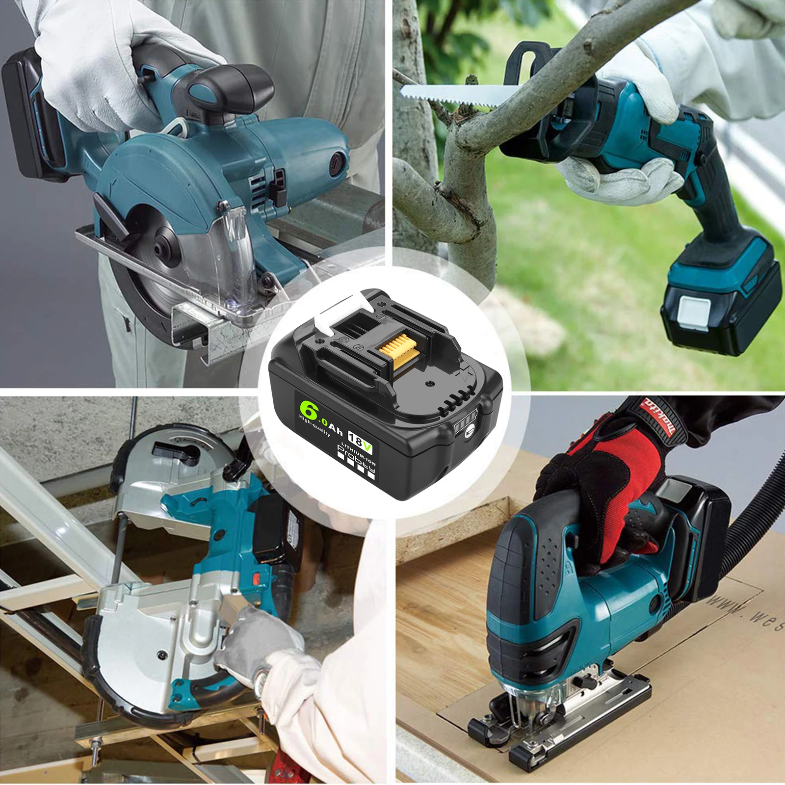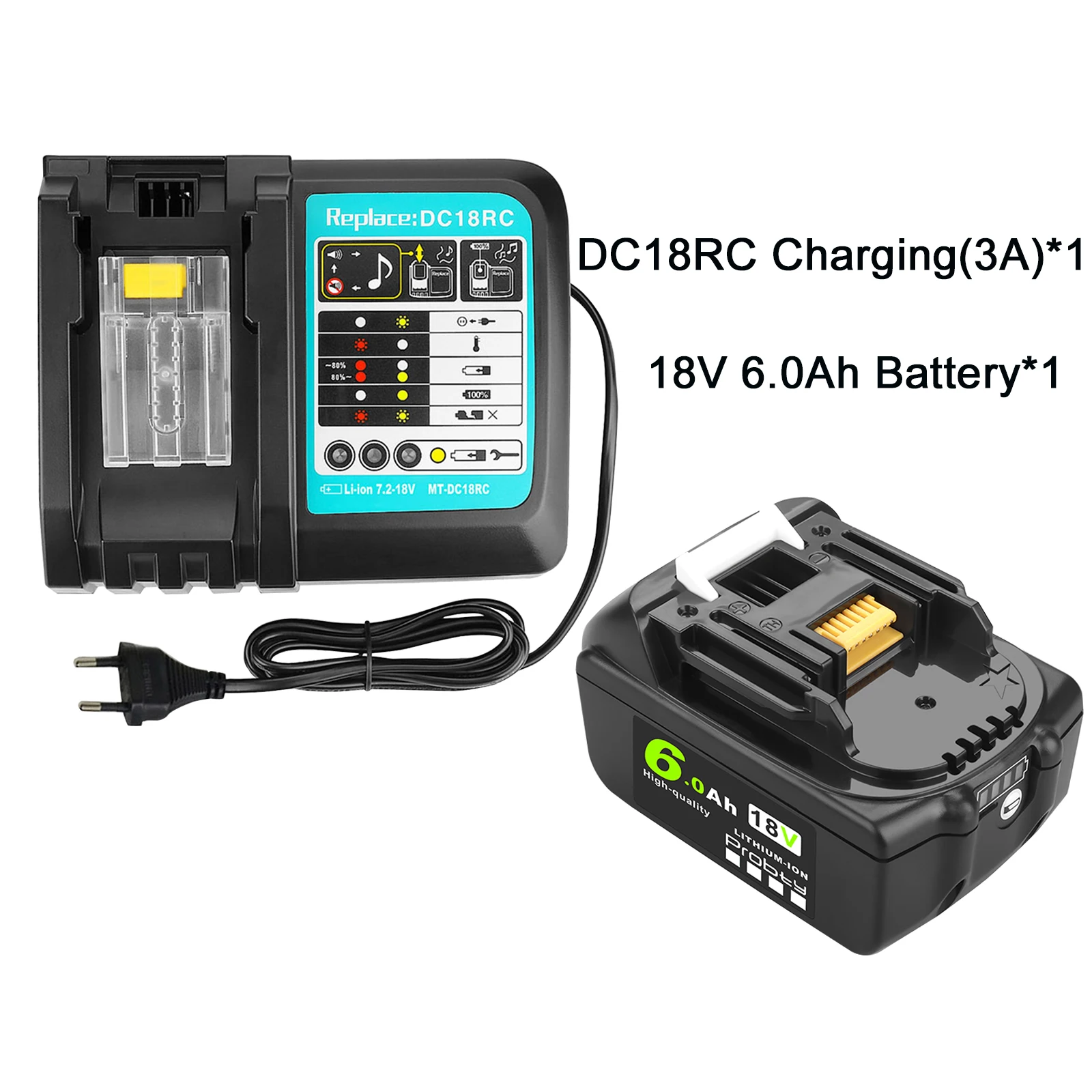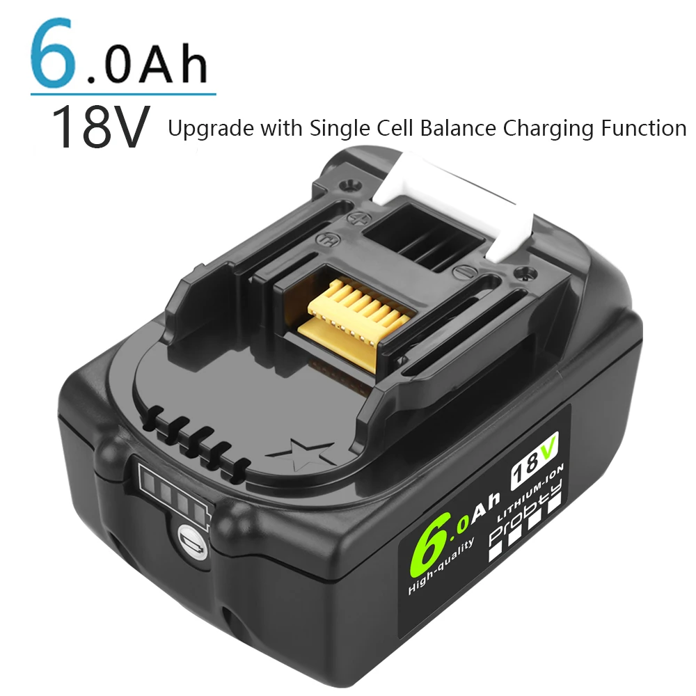 Replace Part: For Makita BL1850 BL1860B BL1860 BL1850B BL1840 BL1840B BL1830 BL1830B BL1820 BL1820B BL1815 BL1815B BL1835 BL1835B BL1845B BL1845 194205-3 194205-5 194309-1 LXT400 BCl180 BCl180f Compatible Models: For Makita BCF201 BCF201Z BCL180 BCL180F BCL180W BCL180Z BCL180ZW BCL182 BCL182Z BCS550 BCS550F BCS550RFE BCS550Z For Makita DUB182Z DUC353Z DUC302Z DJR186Z DJR187Z DJV180Z DSS610Z DSS611Z, DHS680Z, DHR202Z, DHP482Z, DHP458Z For Makita DTD152 DTD152Z DTD153Z DTM50Z DTM51Z DGA452Z DBO180Z DML801 For Makita BDA350 BDA350F BDA350RFE BDA350Z BDA351 BDA351RFE BDA351Z BDF451 BDF451Z BDF452Z BDF452Z BDF453Z For Makita BJR181RFE BJR181X BJR181X1 BJR181Z BJR182 BJR182F BJR182X Product introduction: Battery Capacity: 6.0Ah Item:Replacement Battery for Makita Battery Voltage: 18V Battery Type: Li-Ion Color: black Charger Description: Power supply: 100-260VPlug type:EU plug Frequency: 50-60HZOutput: 3A Upgraded PCB Ciucuit board, better compatibility with original device and more durable. Thick&solid outer case and shock-absorbing inner-liner are engineered to protect the battery. Produced by eco-friendly materials without lead or mercury. Certified by CE ,RoHS and UL industry quality standard. Packing Content: 1 x Replacement Power Tool Battery 1 x Battery+ Charger