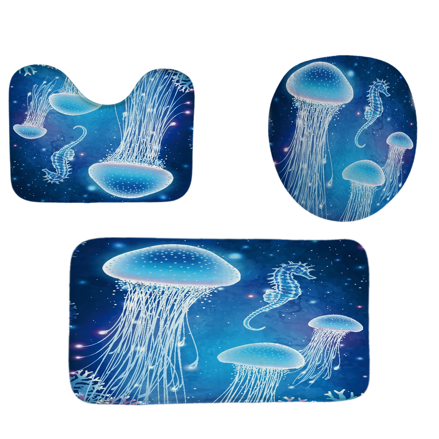 Shower curtain size: 180x180cm / 70.9x70.9in Bath mat set size: Square size: 75x45cm / 29.52x17.7in U shape size: 45x37.5cm / 17.7x14.7in Toilet cover size: 38x35cm / 15x13.7in,Manual measuring, please allow 1 ~ 5 cm error,thank you.