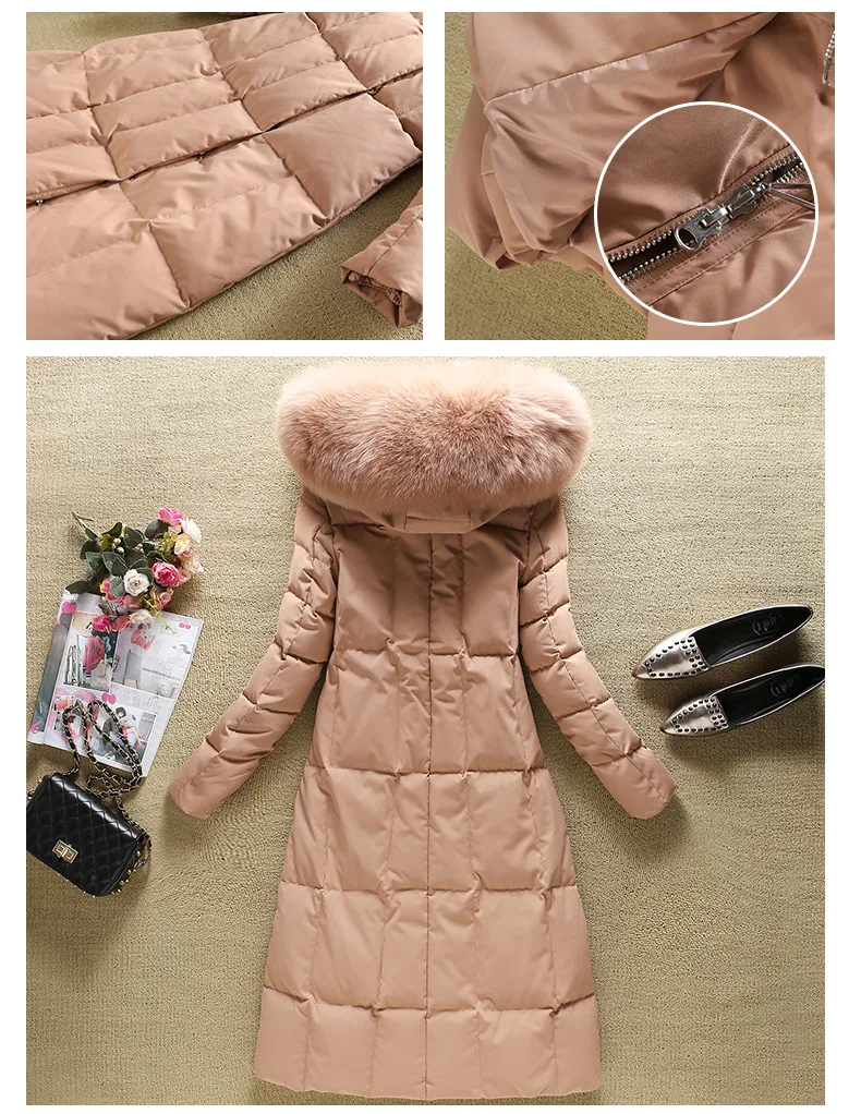 Женская пуховая куртка с капюшоном зимнее пальто на 90% белом утином пуху