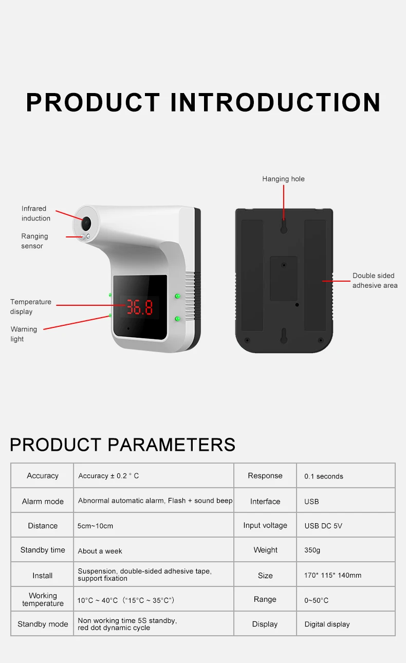 Функция: обнаружение температуры тела и стимулирование дезинфицирующего средства для рук
