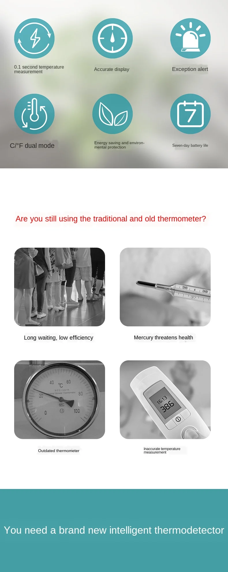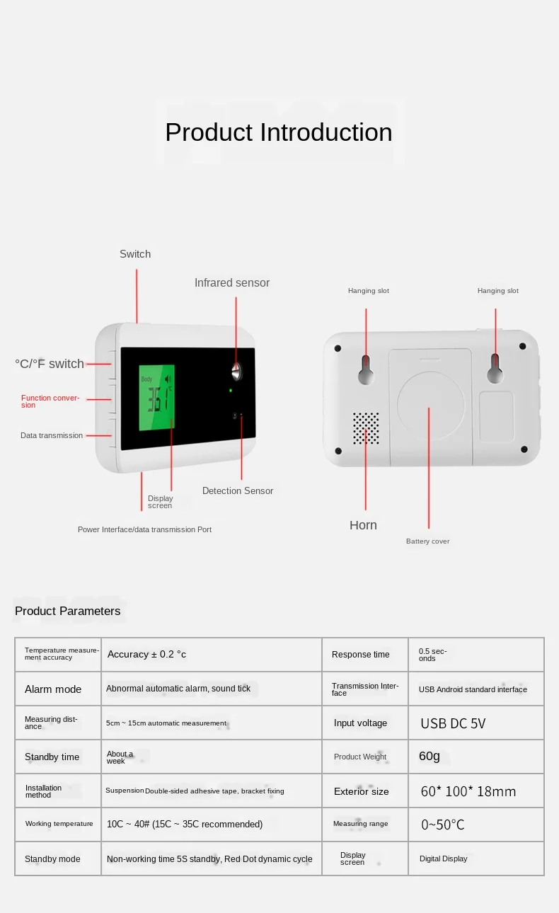 Быстро и точно: в течение 1 секунды для чтения для body (тело) и object (предмет), с точностью до 0,1 ℉. Легко диагностировать лихорадку. Бесконтактный дизайн: Бесконтактный инфракрасный термометр может обнаруживать температуры был доставлен в течение 3-5 см (1,2-2 дюйма) расстояние от лба, что делает её более полезной и удобно. Будильник: Трехцветная подсветка, функция уведомления о высокой температуре: зеленая подсветка для нормальной температуры тела (34,0 ℃-37,4 ℃/93,2 ℉-99,4 ℉); синяя подсветка для низкая feve (37,5 ℃-38,5 ℃/99,5 ℉-101,3 ℉); Красная подсветка для высокая температура (38,6 ℃-43,0 ℃/101,4 ℉-109,4 ℉). Большой ЖК-монитор с подсветкой: в темном помещении для вашего спящего ребенка для измерения температуры, чтобы увидеть температуру тела или для людей с плохим зрением. Режим тела и режим объекта доступны: один переключатель для изменения made.32-212 ℉(0-100 ℃) широкий диапазон, не только для температуры тела, но и для температуры помещения, объекта, молоко, еда, вода для ванны и т. Д.