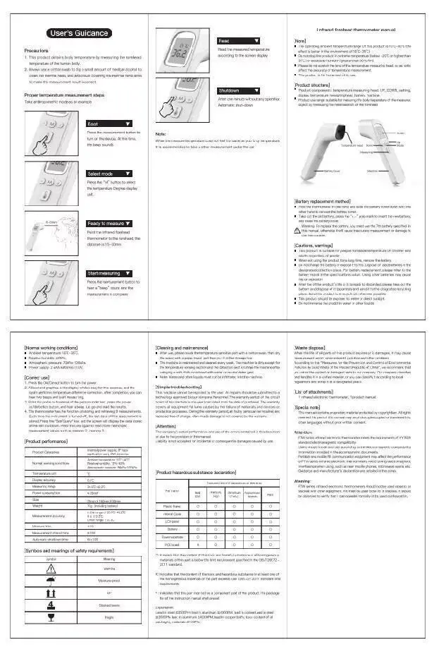 Диапазон измерения: температура тела 34 ℃ ~ 42 ℃