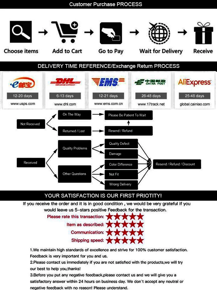 Если вы не удовлетворены нашим товаром, пожалуйста, свяжитесь с нами, прежде чем оставить отрицательный или нейтральный отзывы, Давайте решим проблему вместе.