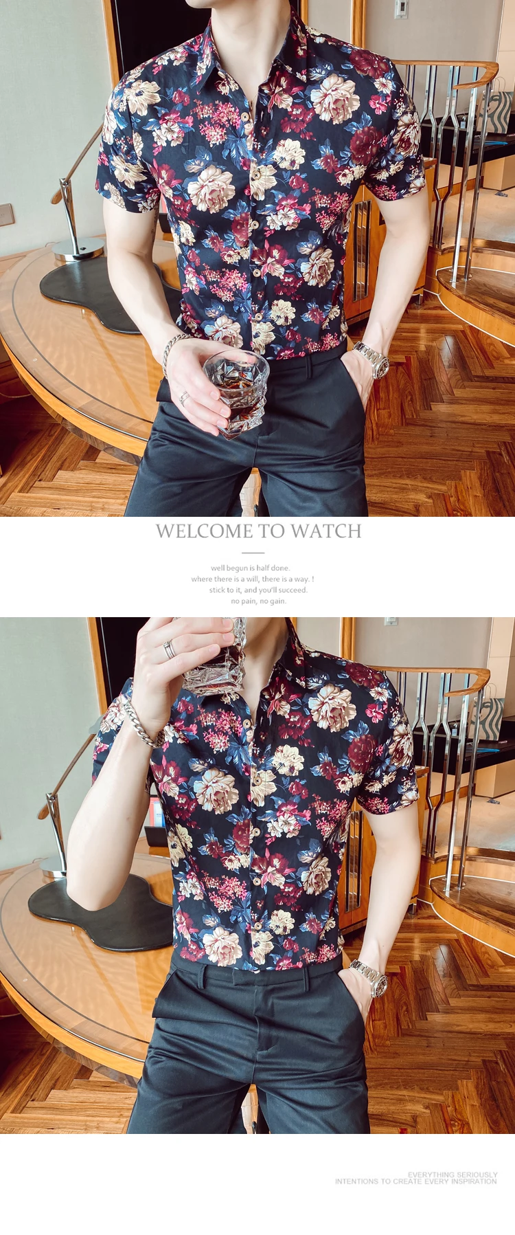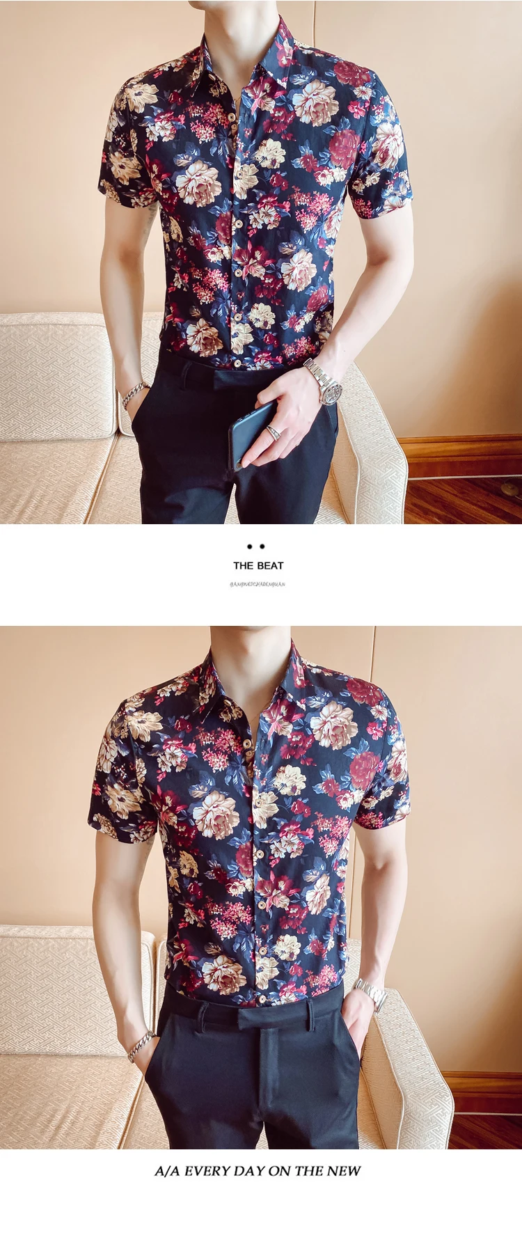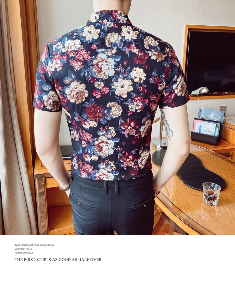 Nueva camisa a la moda de verano para hombre, Camisa ajustada de manga corta con flores, ropa hombre tendencia de talla grande,