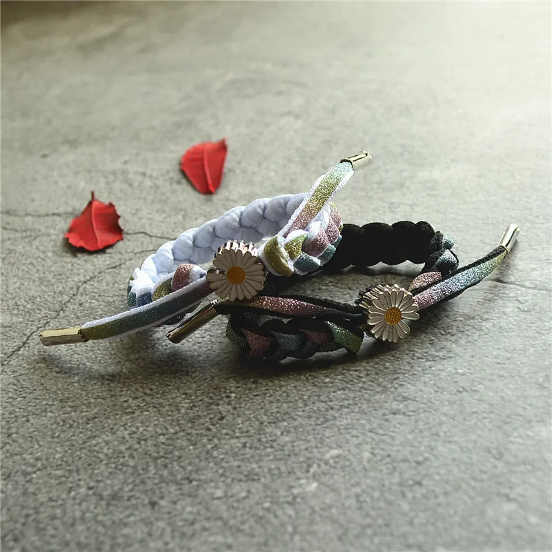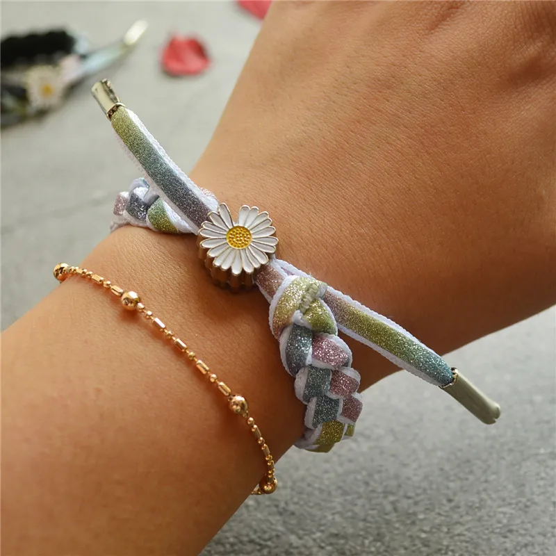 Модный маленький браслет с хризантемами ручной работы Плетеные цветные шнурки для обуви браслеты ромашки на запястье для женщин девочек детские ювелирные изделия
