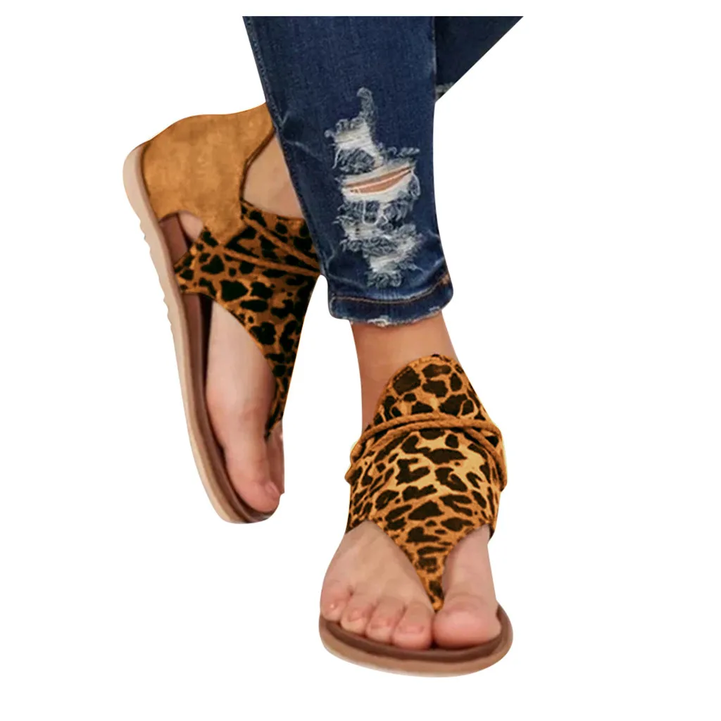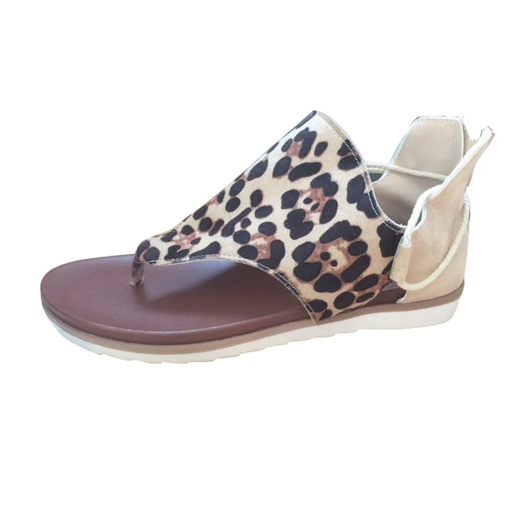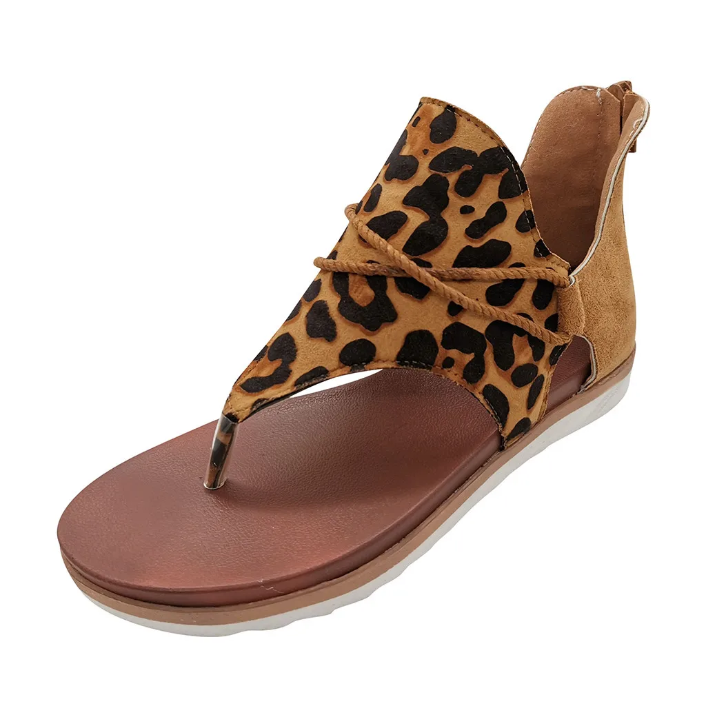 Женские повседневные шикарные винтажные леопардовые Вьетнамки; Удобные сандалии; Обувь на молнии