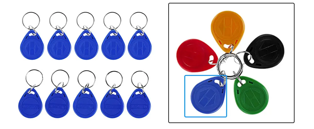 Инструкция: Вы можете прочитать эти клавиши на клавиатуре контроллера доступа, чтобы удобно открыть дверь. Только ключ, готовый с нашей Инструкцией, затем можно открыть дверь. Технические характеристики: Рабочая частота: 125 кГц С АБС-пластика высокого качества Каждый из них имеет уникальный идентификационный номер Диапазон чтения: 1-10 см Цвет: красный, синий, желтый, зеленый, черный (по умолчанию мы отправим 10 шт. синего цвета, если вы хотите другой цвет, пожалуйста, оставьте нам сообщение) Количество: 10 шт. (если вы хотите больше, пожалуйста, свяжитесь с нами)