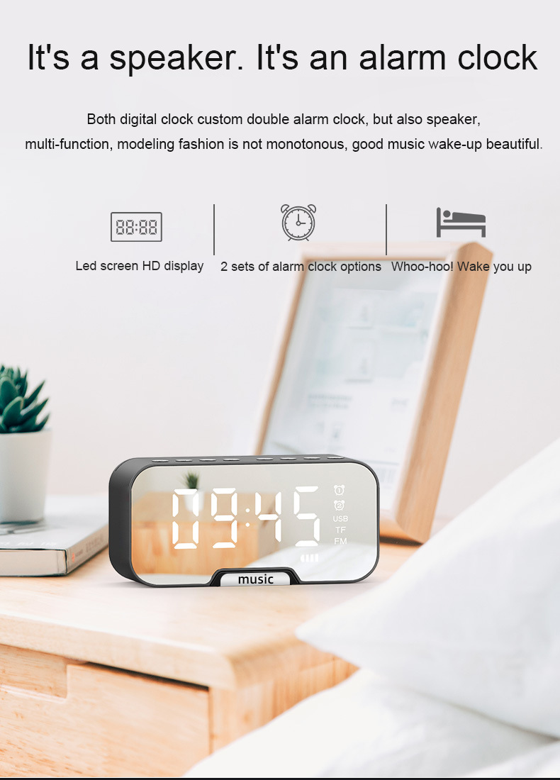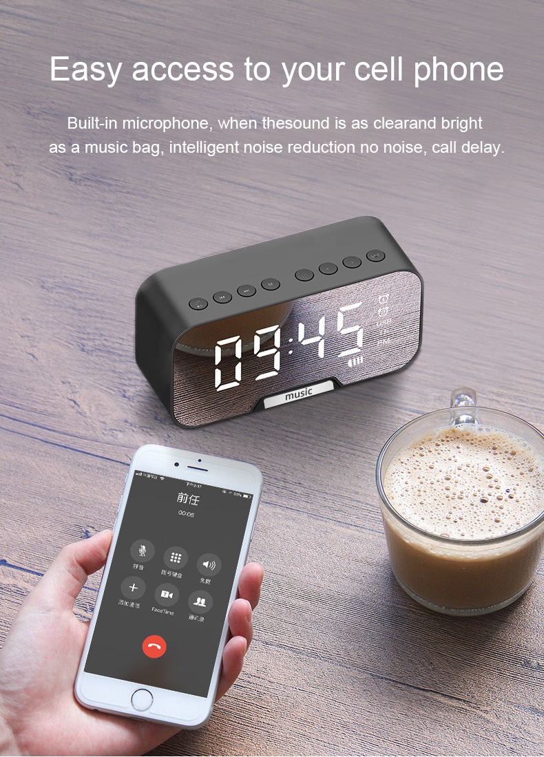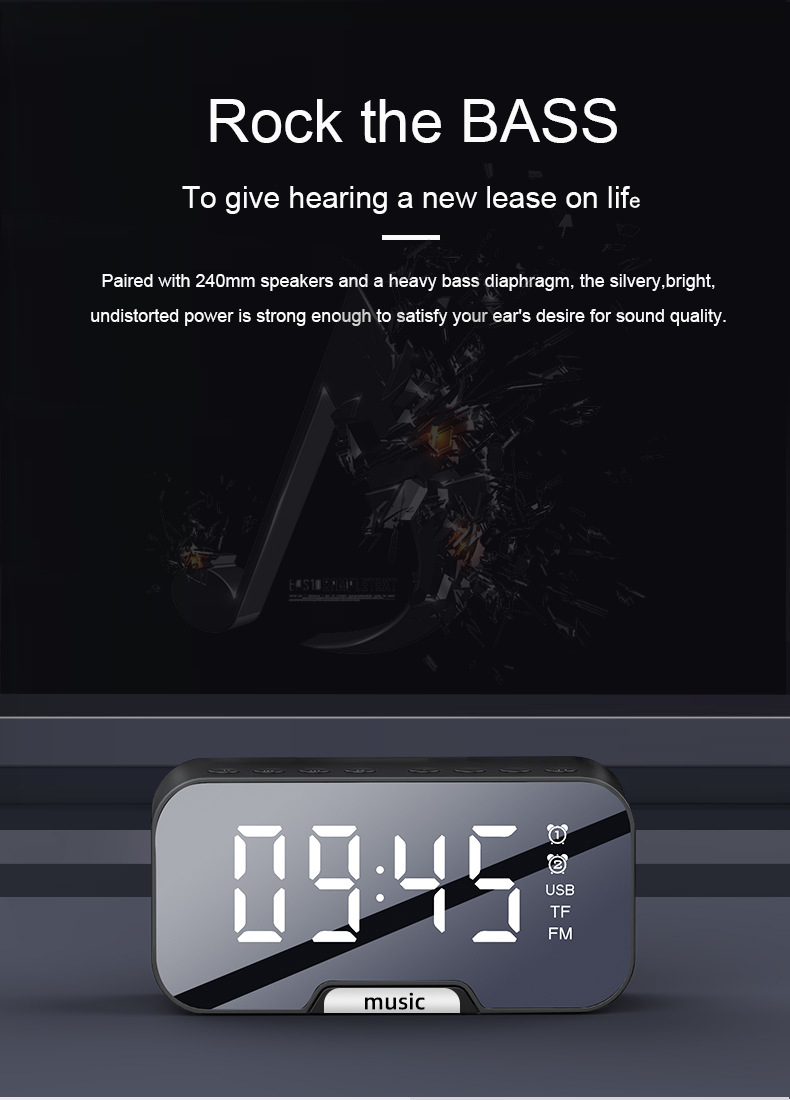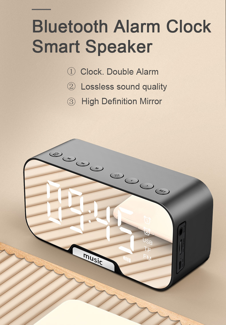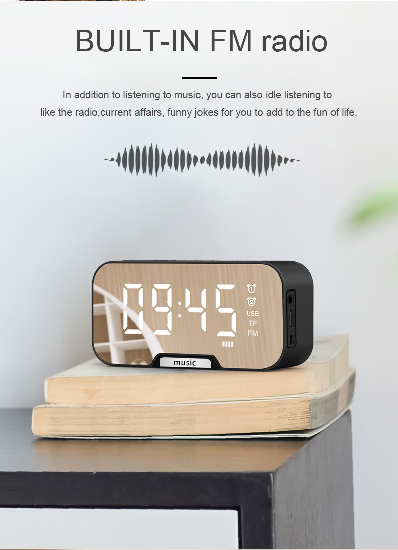 Беспроводной Bluetooth динамик Q5 5 0 Настольный будильник зеркальный измеритель