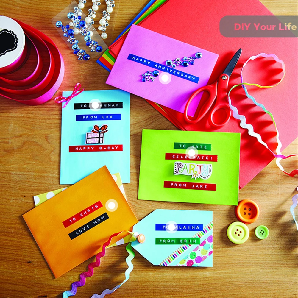 -Исследуйте свою художественную сторону и используйте этикетки с тиснением для улучшения ваших скрапбуков, фотоальбомов или проектов DIY.