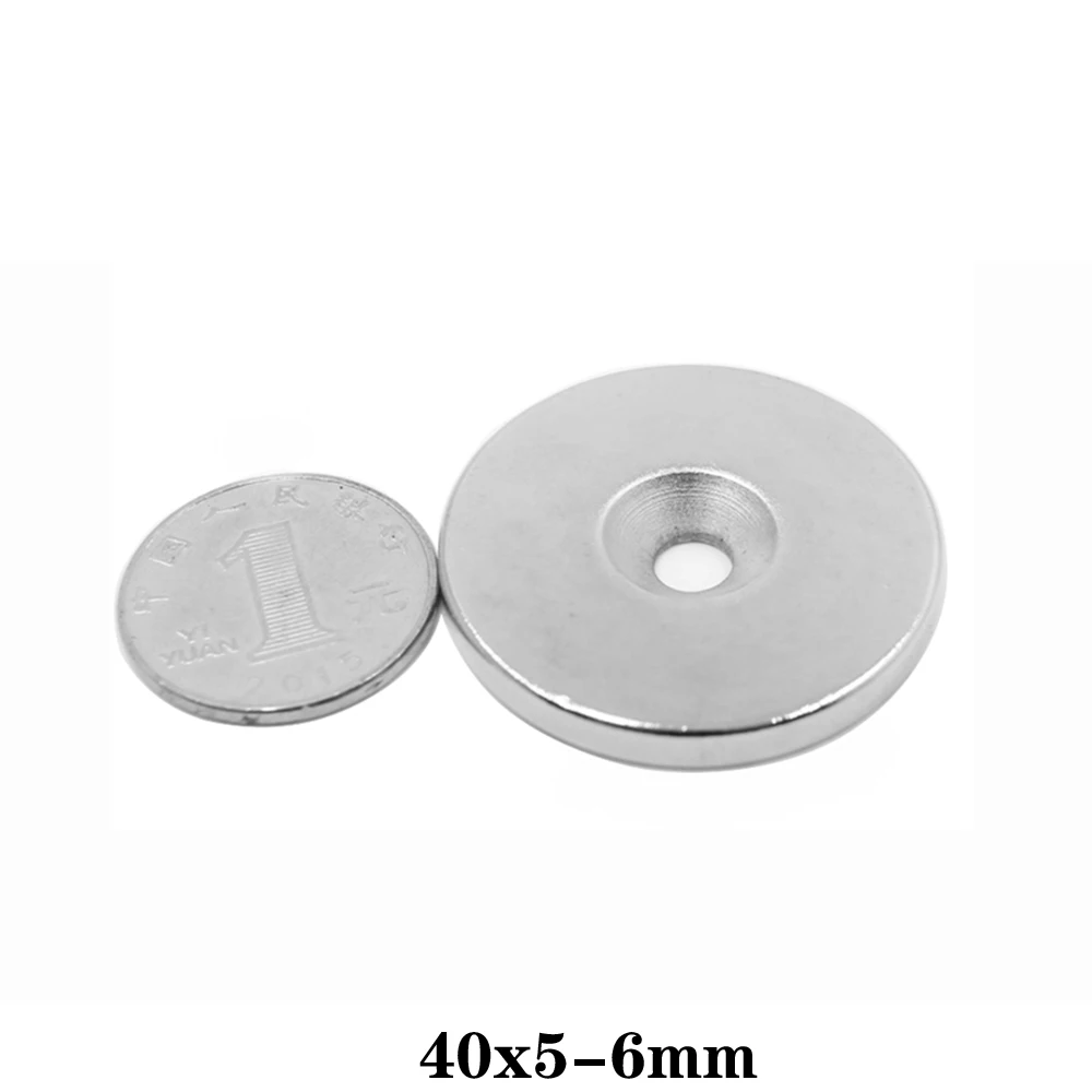 1 ~ 20 шт 40x5-6 мм мощный магнит 40*5 мм отверстие 6 мм круглый потайной магнитный 40x5-6 мм неодимовые Дисковые магниты 40*5-6 мм 40x5