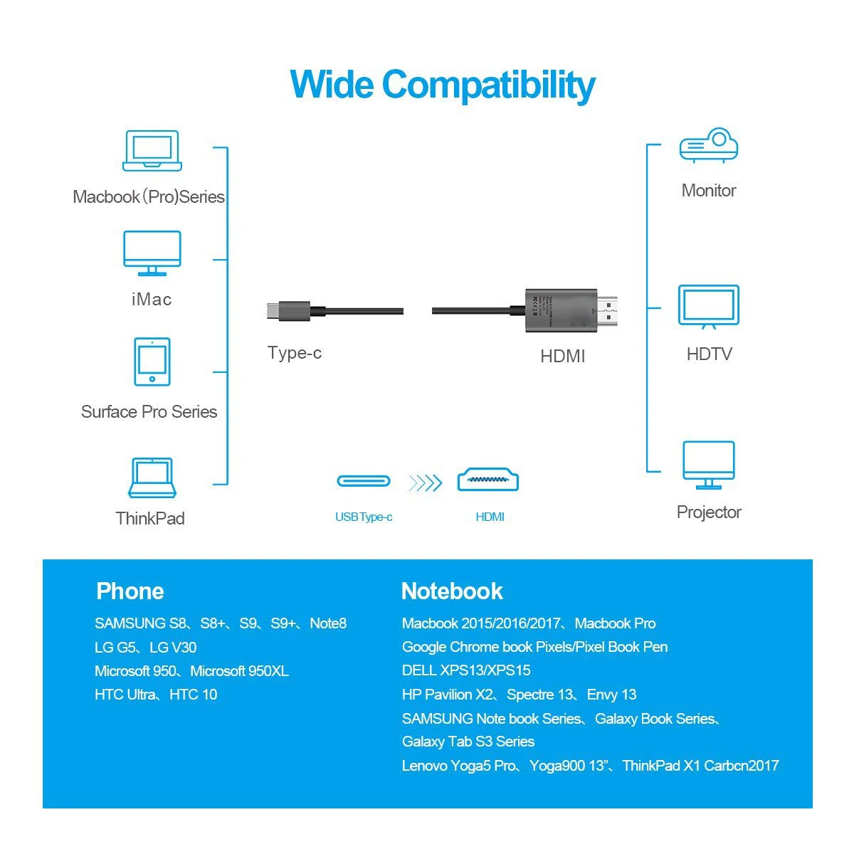 Кабель-адаптер USB 3,1 Type C USB-C-4K HDMI HDTV для Samsung Galaxy S8 Macbook