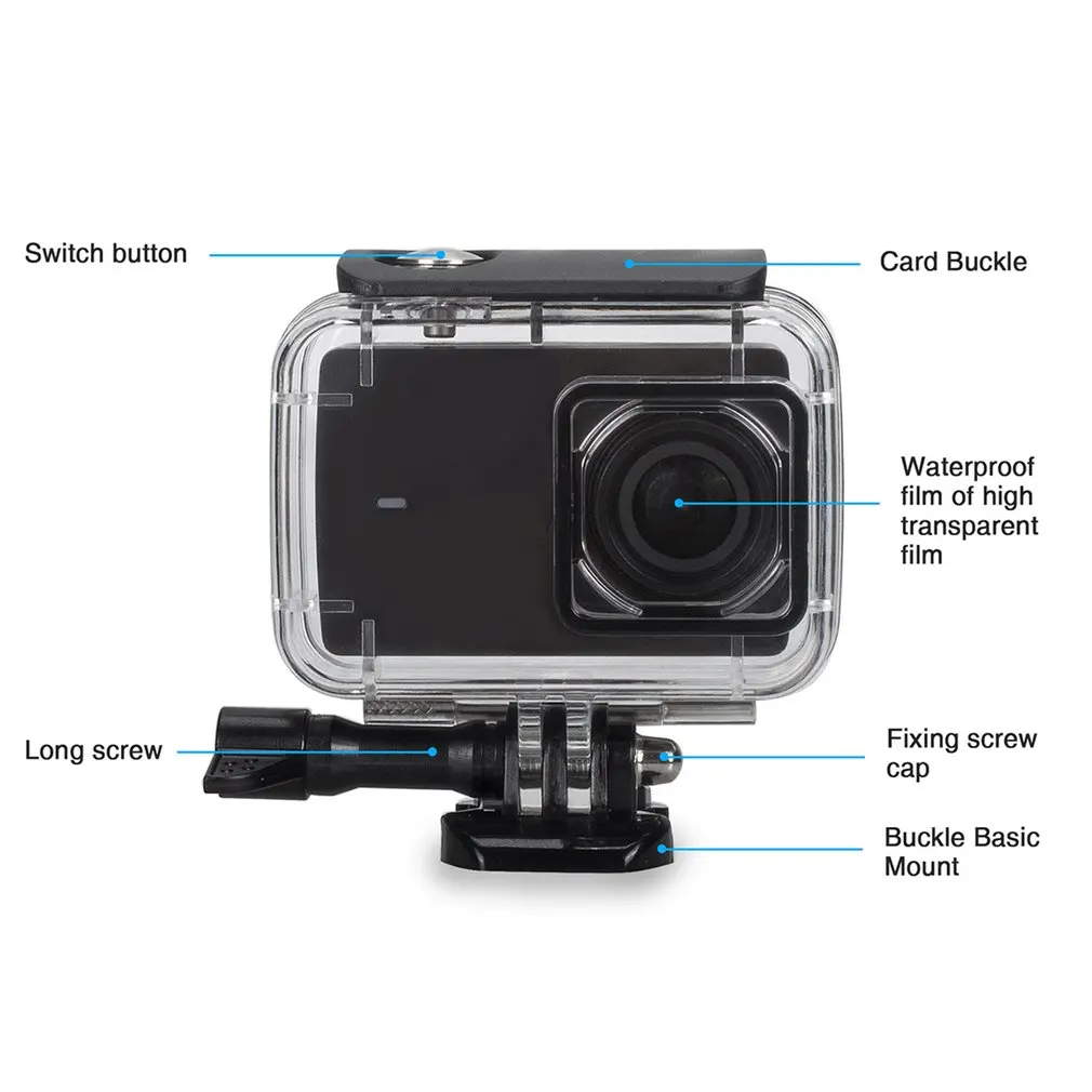 2,45 м водонепроницаемый: 45 м запасной водонепроницаемый корпус может защитить вашу камеру от повреждений под водой. Также обеспечивает дополнительную защиту от пыли, царапин и ударов.