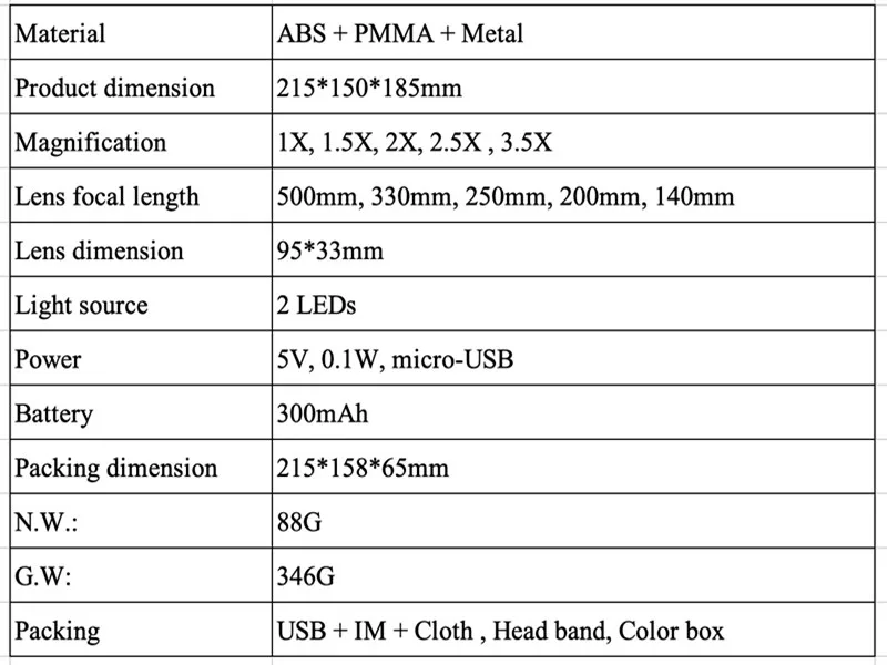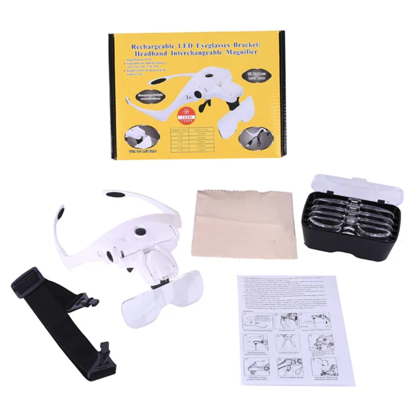 Регулируемый 5 линз Лупа светодиодный светильник головная повязка Лупа стекло светодиодный увеличительное стекло es с лампой