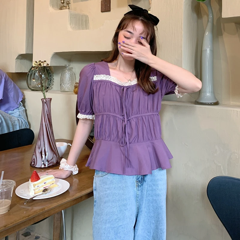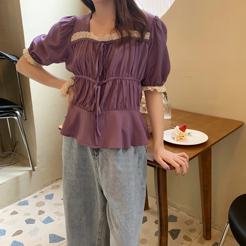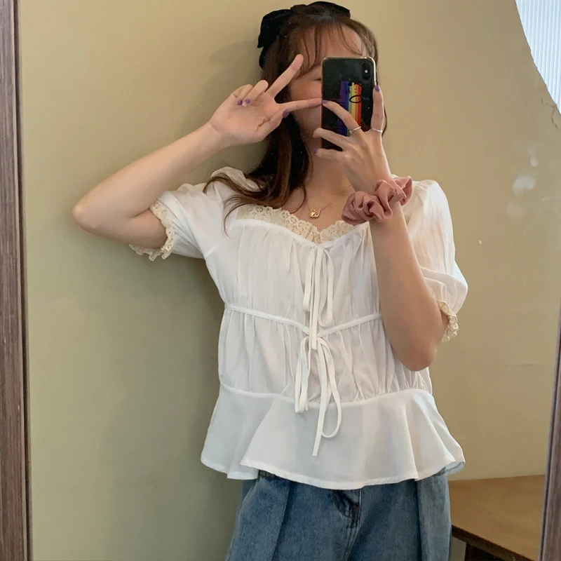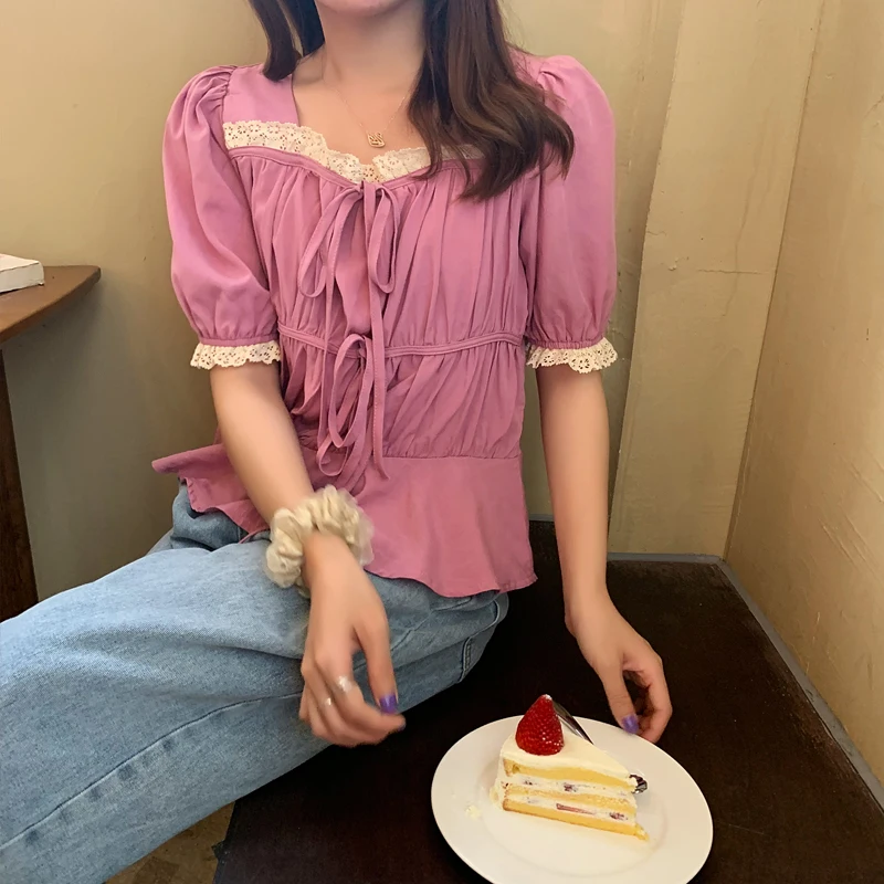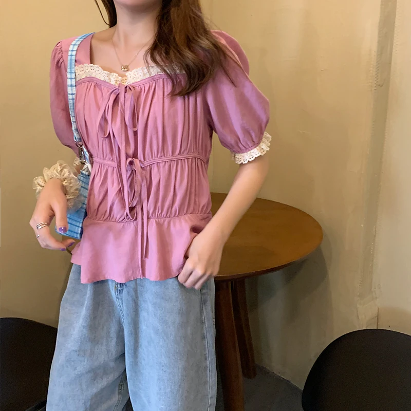 Женская Свободная блузка на пуговицах составного кроя с длинными рукавами в