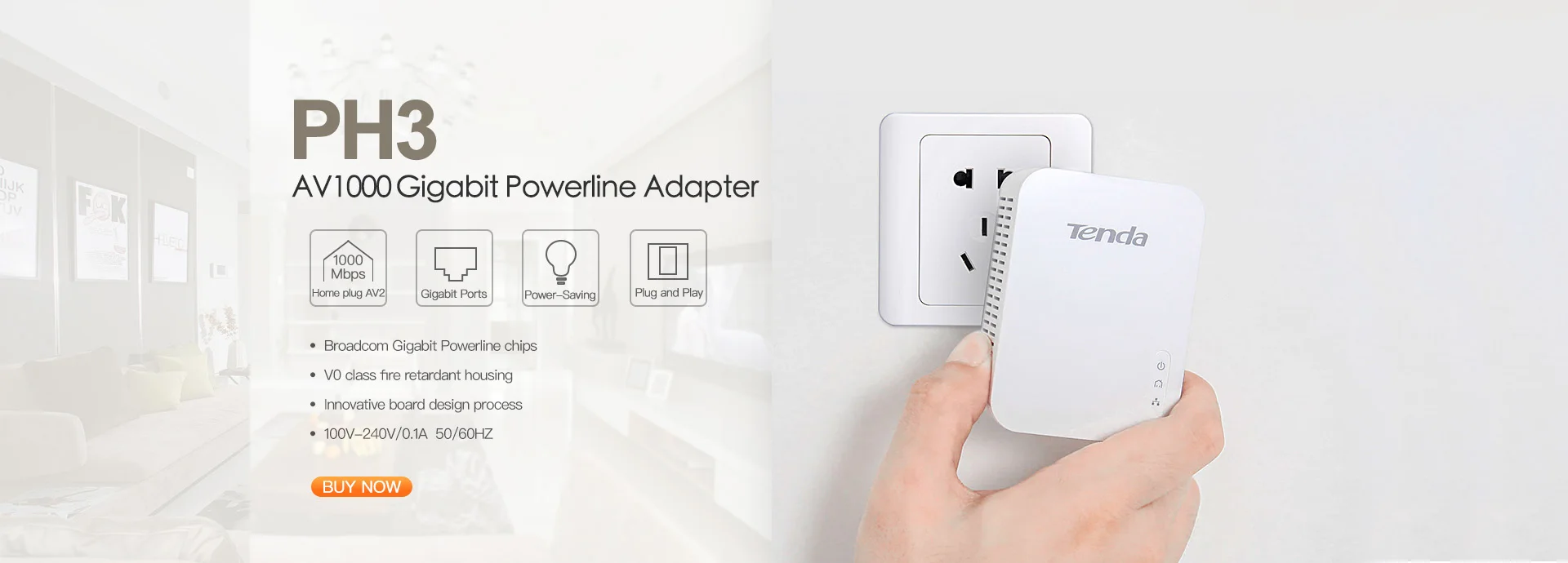 AV1000 гигабитный адаптер Powerline Допускаемая нагрузка потребеление энергии менее 3,2 W Полная гигабитная скорость, Подключи и работай Чипы Broadcom Gigabit Powerline