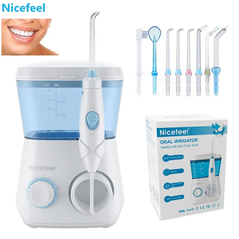 Большой объем резервуара для воды и IPX7 водонепроницаемый: 600 мл большая емкость воды предлагает вам 2 минуты воды. С водонепроницаемым уровнем IPX7 устройство полностью функционирует даже случайно разбрызгивается водой. Очистка и защита от протечек: он может удалять попавший в ловушку мусор пищи и вредные бактерии с высокочастотной пульсовой водой. Содержит нижнюю присоску и шланг США, избегайте скольжения случайно и протекания воды. Применимые люди: Этот зубной водный Флоссер предназначен для удовлетворения особых потребностей человека с имплантатами, бандажом и болезнями десен. Мы не рекомендуем использовать детей, потому что Детские десны тонкие и хрупкие. 10 регулируемых уровней давления воды: Найдите удобную установку для ваших зубов и десен. Вы можете регулировать давление воды, чтобы наилучшим образом удовлетворить ваши зубы и десны комфорта. 8 многофункциональных насадок для воды в комплекте-3 классических струйных наконечника, 1 зубной налет, 1 ортодонтический наконечник, 1 пародонтальный наконечник, 1 зубная щетка и 1 Очиститель языка. Вы можете гигиенически поделиться им со всей семьей; Дополнительный скребок для языка помогает предотвратить плохое дыхание и накопление бактерий.