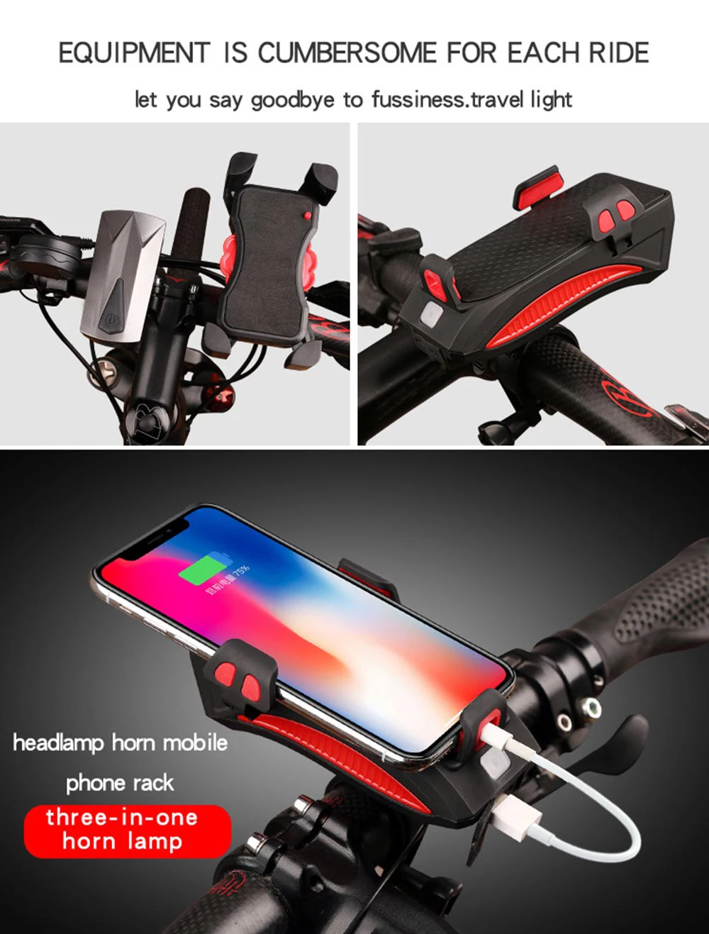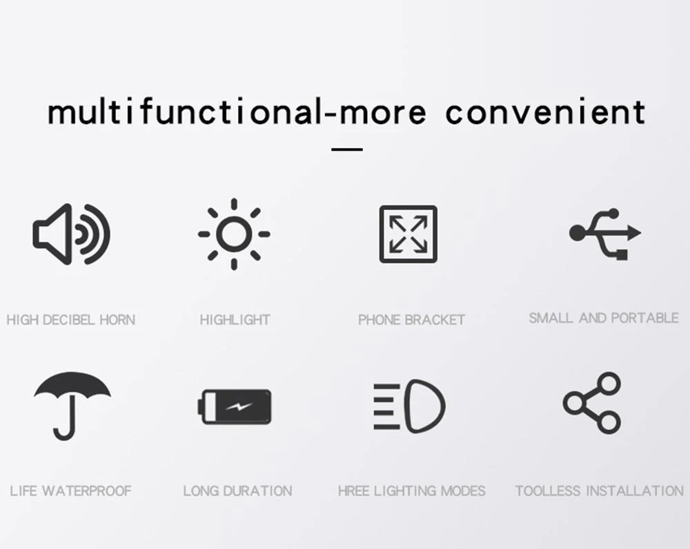 Мобильный телефон держатель Рог фары для езды 130 высокий децибел + яркие фары + мобильный телефон кронштейн Более универсальный Высокодецибел динамик, высокая четкость, мобильный телефон, держатель, USB зарядка, водонепроницаемый, большой емкости батареи, три режима светильник, без установки инструмента. Трансформированный мобильный телефон, портативный и безопасный, упругие зажимы, хорошая стабильность, регулируемая ширина 50-80 мм для большинства мобильных телефонов. Эластичный зажим не может быть разбит. Амортизирующая прокладка не повреждает телефон Кронштейн оснащен амортизирующей подушкой для защиты чехол для телефона и предотвращения царапин. Подсветка фар, защита ночной езды, дизайн освещения с двумя лампами, чтобы обеспечить безопасную езду в ночное время. Сильный светильник, низкий светильник, три режима мигания. 130 децибел динамиков, попрощайтесь с криками, до 130 децибел звук Эффективно предупреждает прохожих, транспортных средств. Мобильная зарядка, удобная и быстрая, встроенный аккумулятор большой емкости 2000 мАч, вы хотите зарядить, когда захотите. Usb-зарядка, более удобная езда, поставляется с usb-зарядкой, может адаптироваться к различным зарядным устройствам USB. Герметичный и водонепроницаемый, он не боится дождливых дней. Это гарантирует, что вам не придется беспокоиться о встраивании дождевой воды в дождливые дни, и вы все еще можете использовать его нормально.