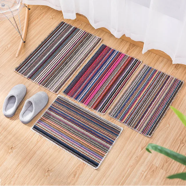 Низкая цена Акция Цветной полосатый входной коврик Коврик Противоскользящий коврик для спальни кухонный коврик четыре цвета Случайная Доставка