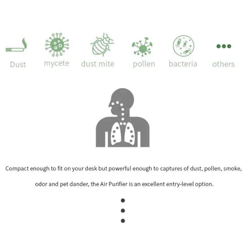 Портативность: если вы находитесь в закрытом пространстве в течение длительного времени, вы будете знать важность циркуляции свежего воздуха. Чистый воздух подходит не только для дома, но и для чистки воздуха, куда бы вы ни отправились, например, в машине, офисе, спальне, кухне и т. д.