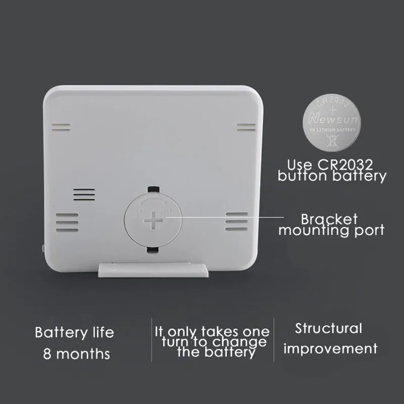 -- Multifunction: Includes time, date, year, alarm clock displaying, indoor humidity and temperature displaying.