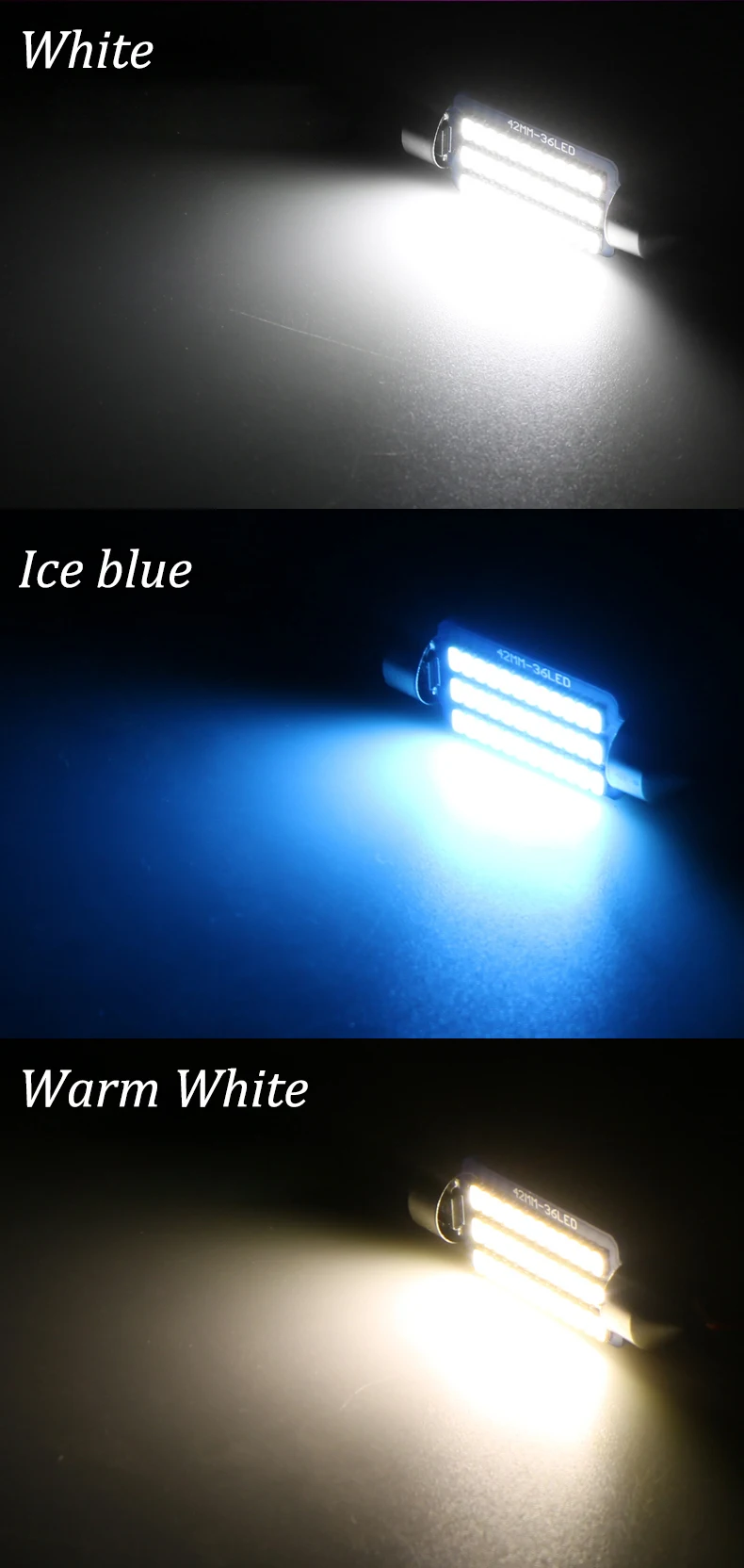 1. Цвет: белый и кристально-синий (другие цвета, пожалуйста, свяжитесь с нами) 2. Наша Роскошная обновленная светодиодная ламповая печатная плата толще, более термостойкая, не 3. Легко выгорает, более стабильный ток и напряжение, чем обычная лампа. 4. Роскошное обновление: придайте вашему автомобилю более современный внешний вид интерьера. 5. Мы делаем все возможное, чтобы проверить нашу продукцию и обеспечить правильную установку каждого размера лампы. Если лампа, которую вы получаете, не подходит к рекомендуемой розетке, пожалуйста, немедленно свяжитесь с нами, и мы убедимся, что вы получите правильный светодиодный индикатор.