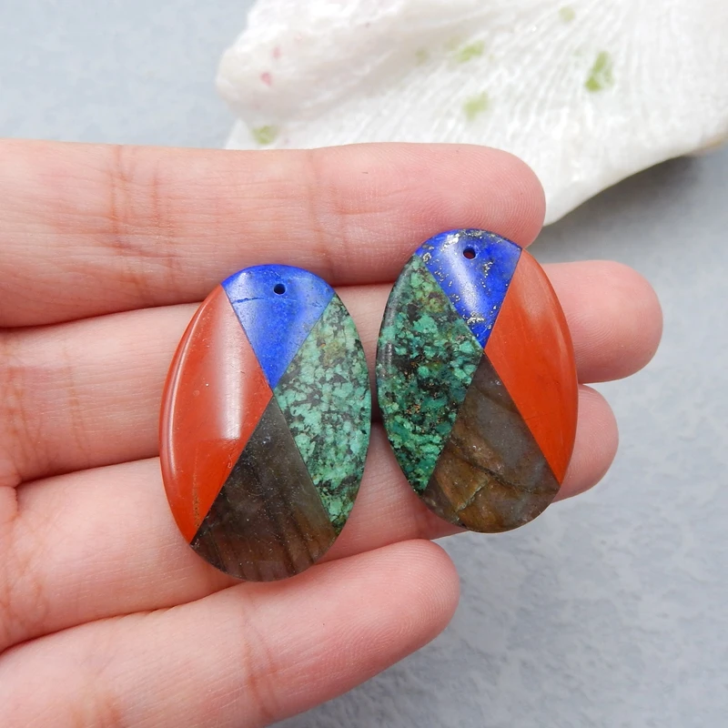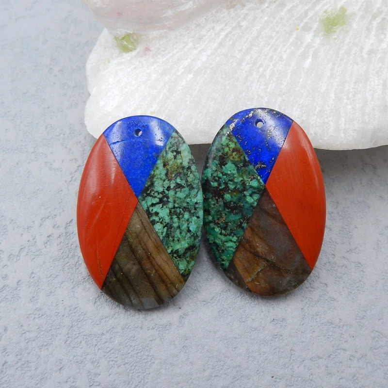 Лабрадорит, красная речная яшма, интарсия, модные женские серьги овальной формы, модные ювелирные изделия, женские серьги, аксессуары, 31x20x5 мм, 9,6 г