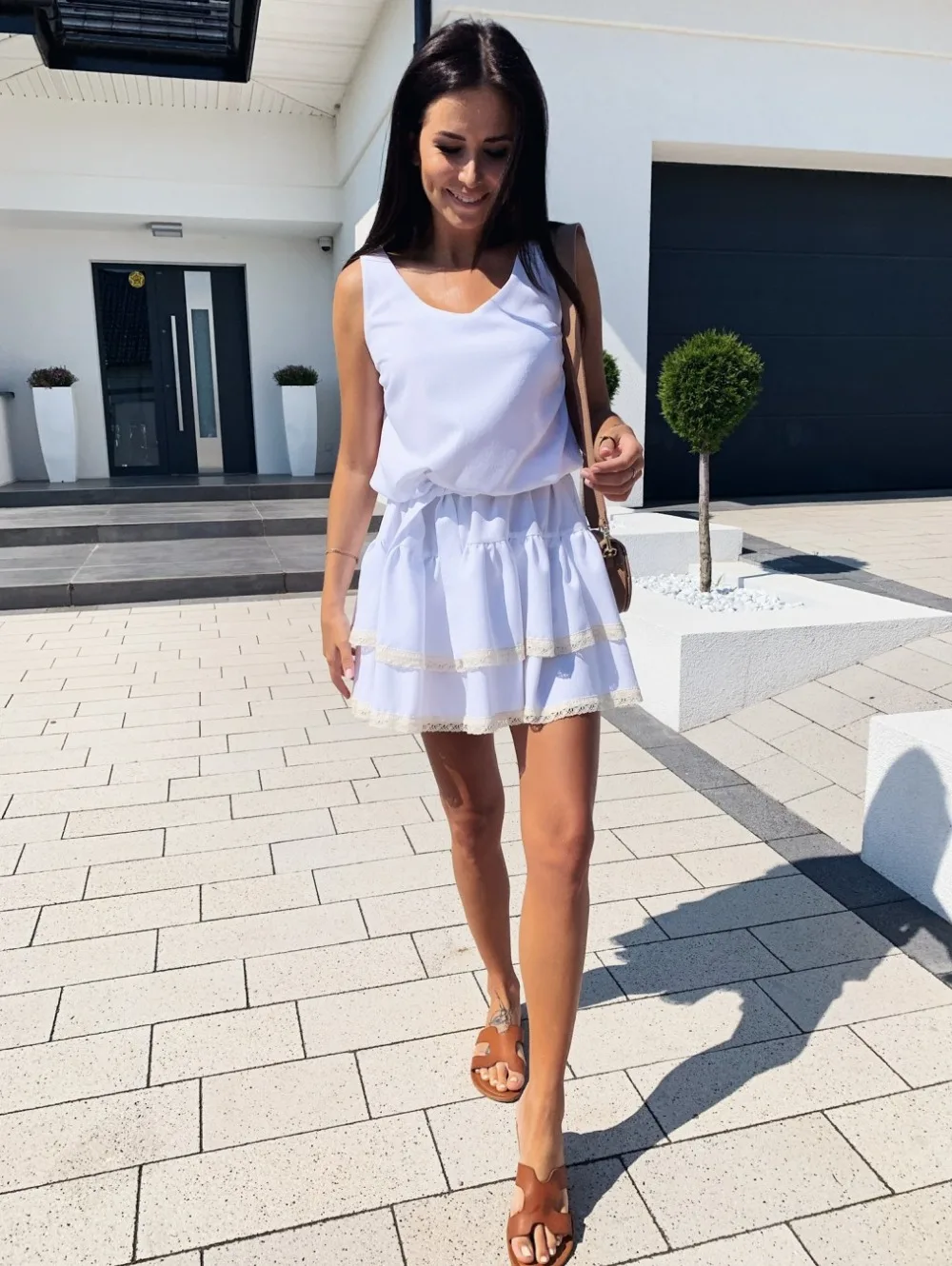 Особенности: свободное Плиссированное кружевное мини-платье с оборками