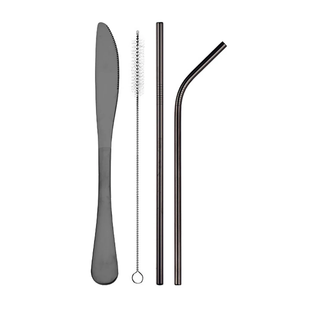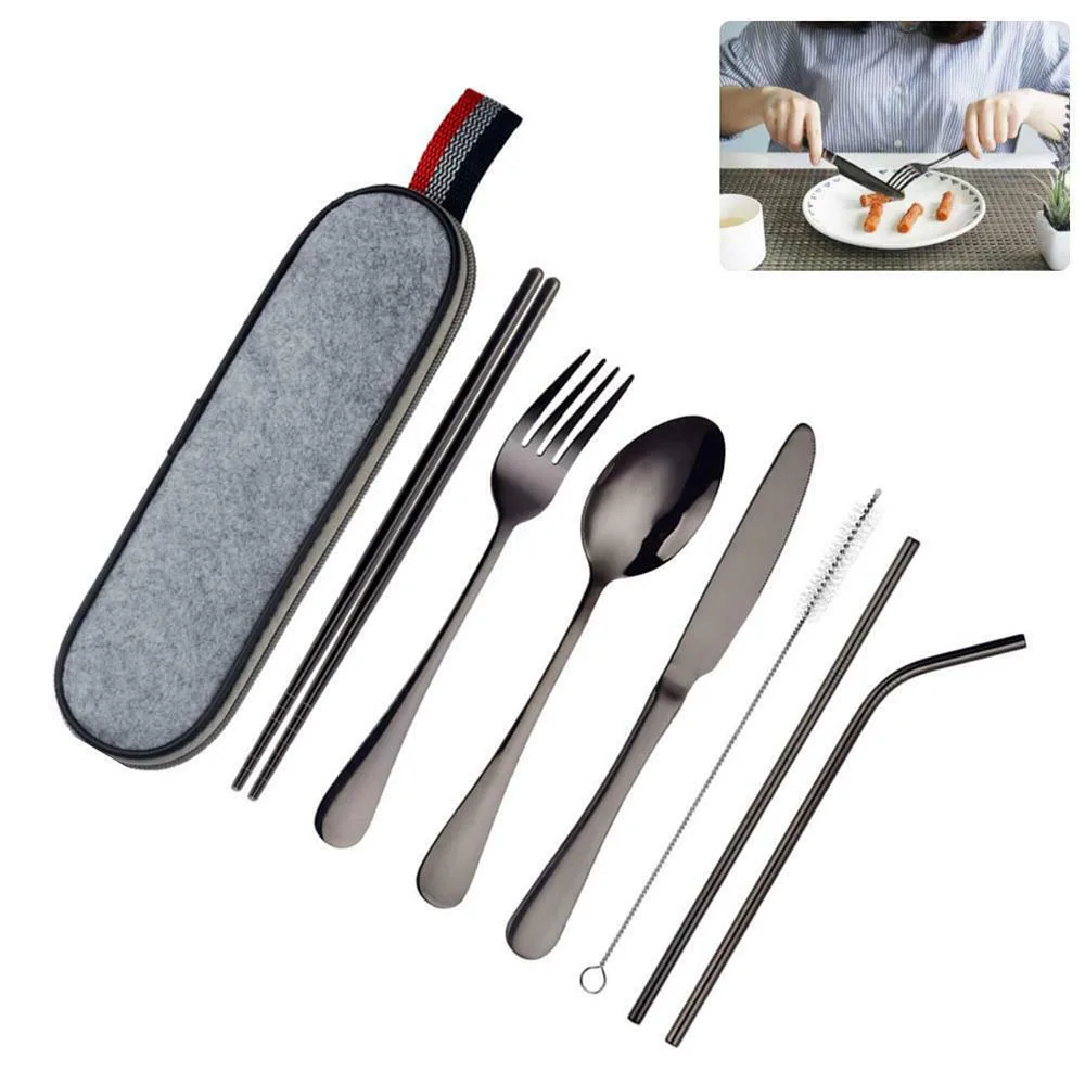 Набор для путешествий из 8 предметов: набор столовых приборов, ложка, палочки для еды, щетка для чистки, прямая соломинка, изогнутая солома, чехол для переноски, подходит для путешествий, кемпинга, школы, полета или работы.
