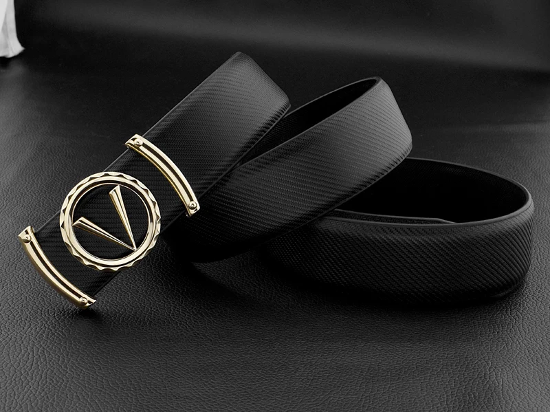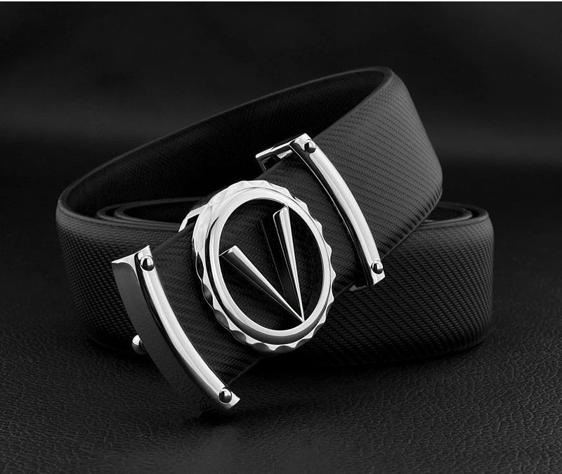 Ремень кожаный мужской с автоматической пряжкой черный прозрачный