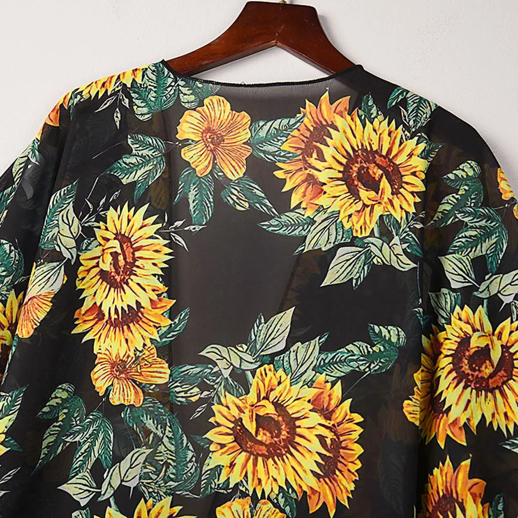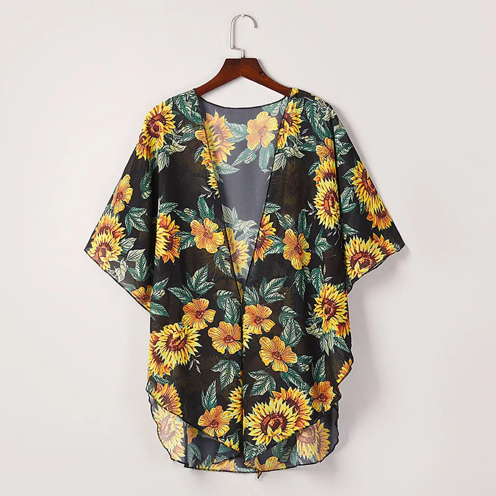 Женская накидка с цветочным принтом, блузка, топы, костюм, бикини, купальник, пляжный купальник, Халат