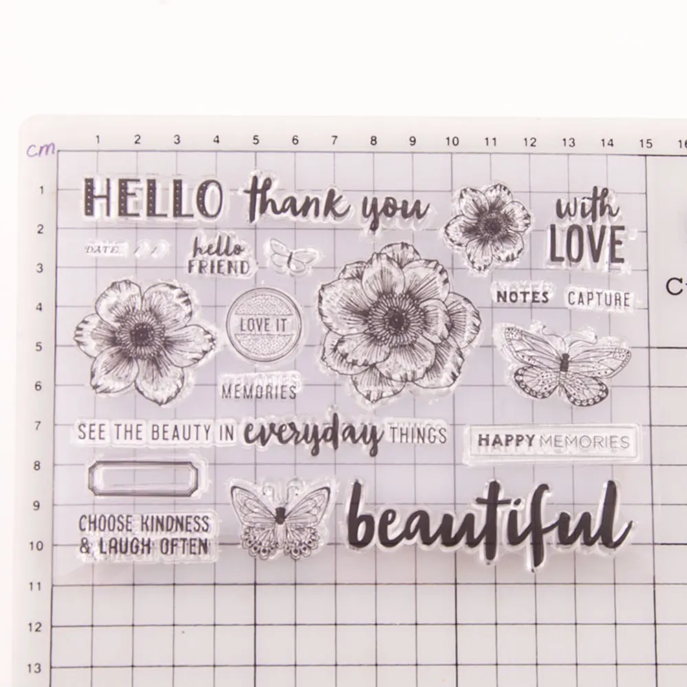 Цветы бабочки спасибо буквы шаблон прозрачные штампы/силиконовые уплотнения для DIY скрапбукинга Рождественская открытка