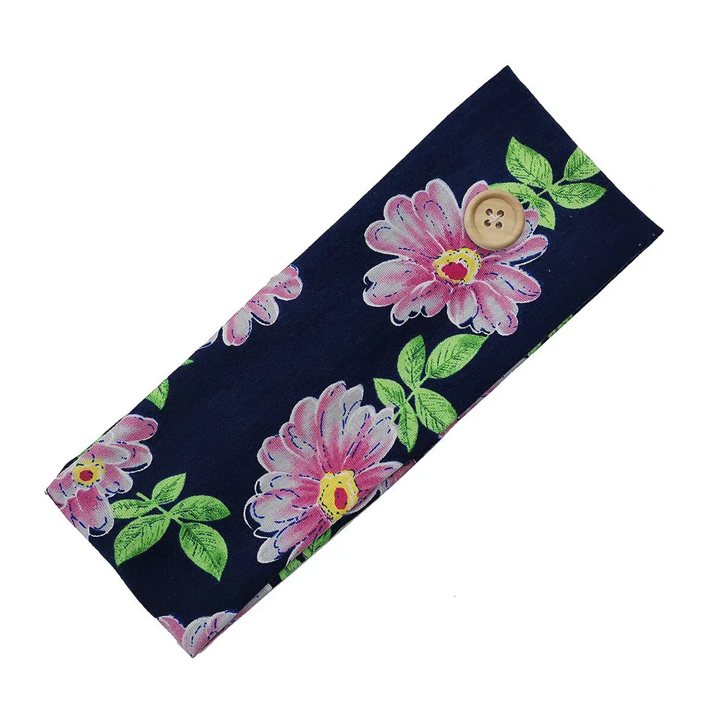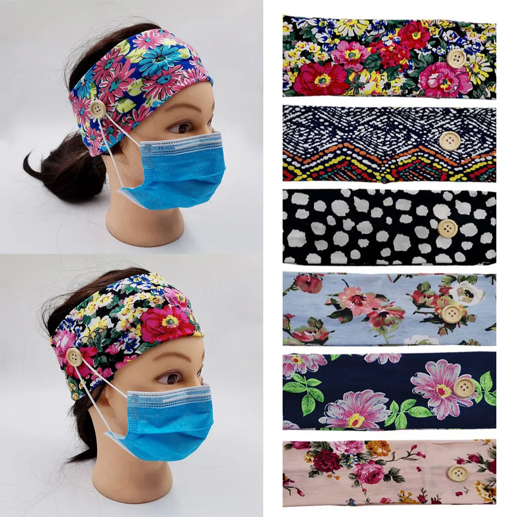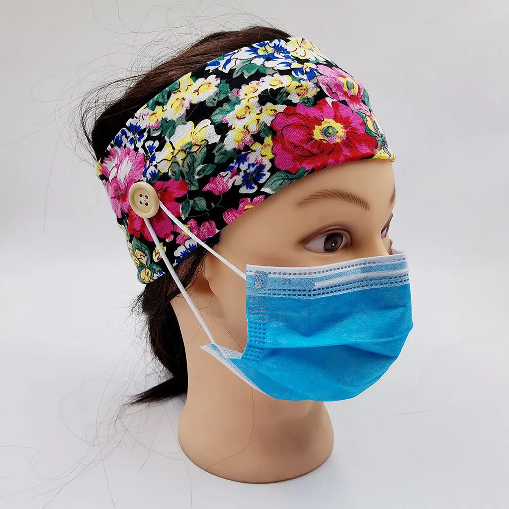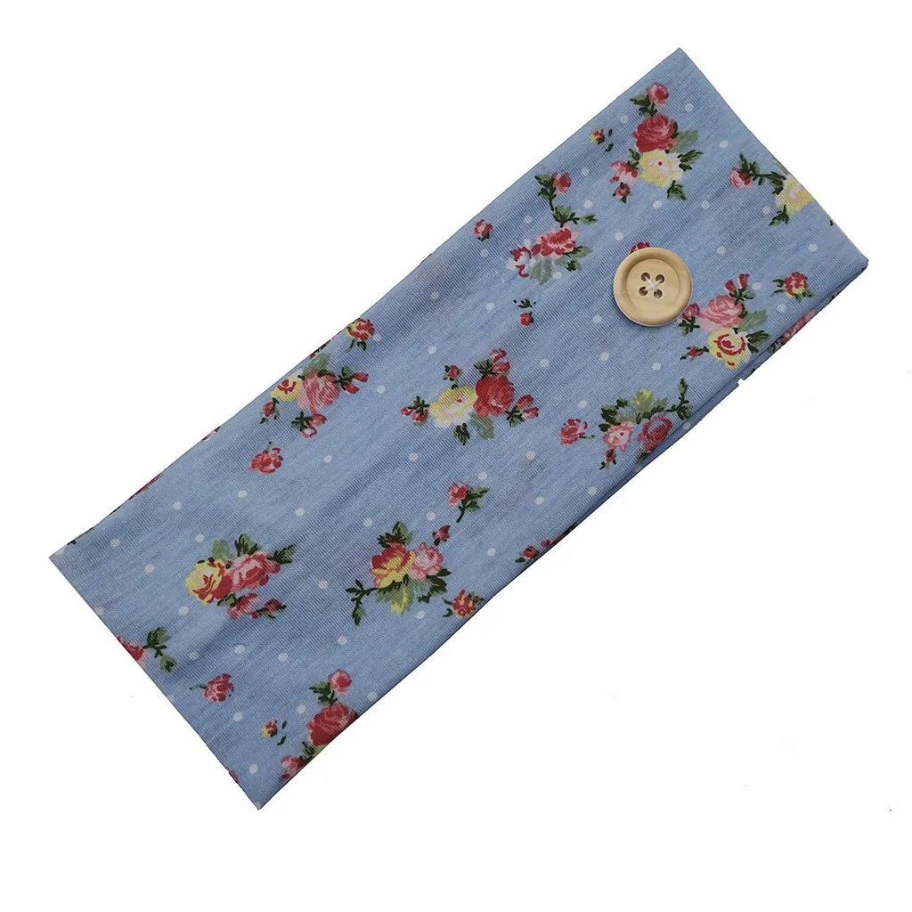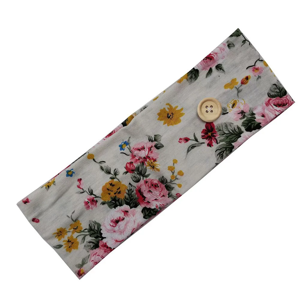 Эластичная Цветочная повязка на голову с пуговицами для йоги, тренировки, тюрбан, аксессуары для волос