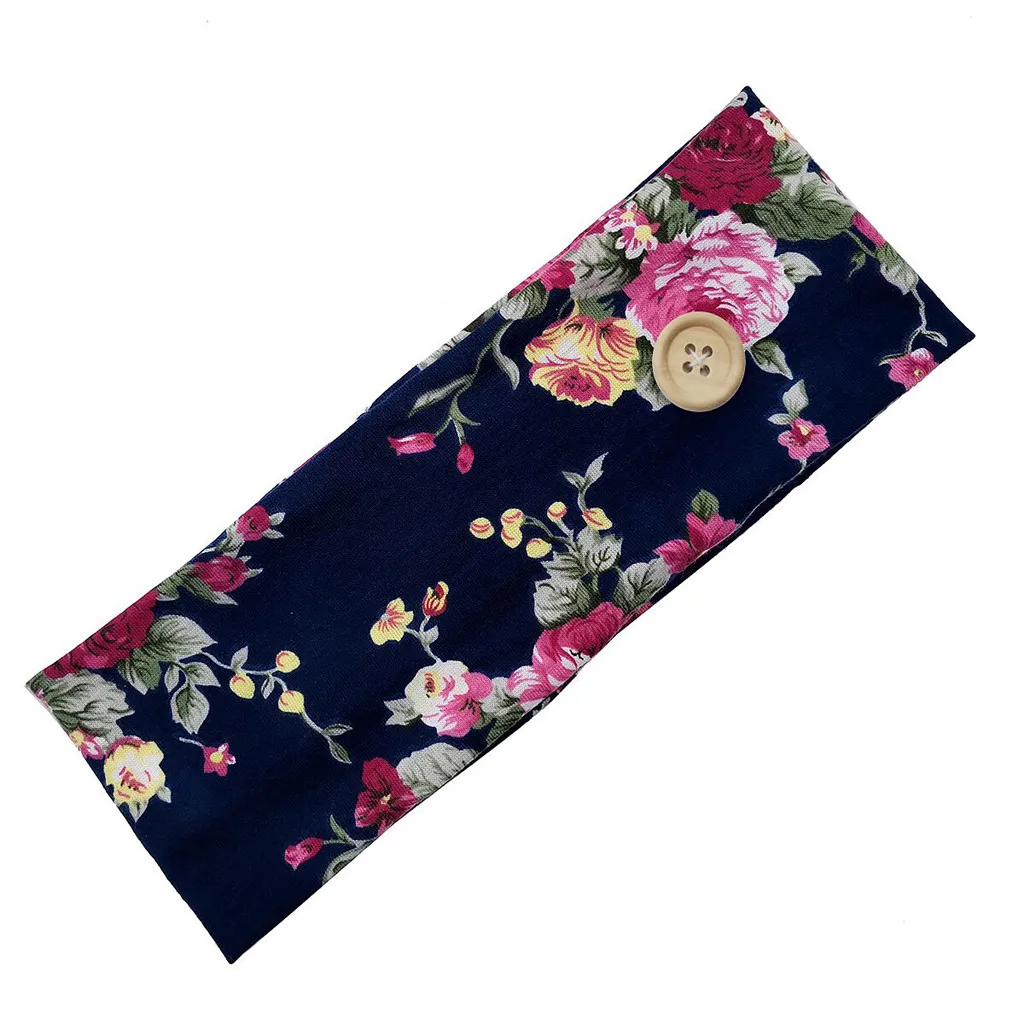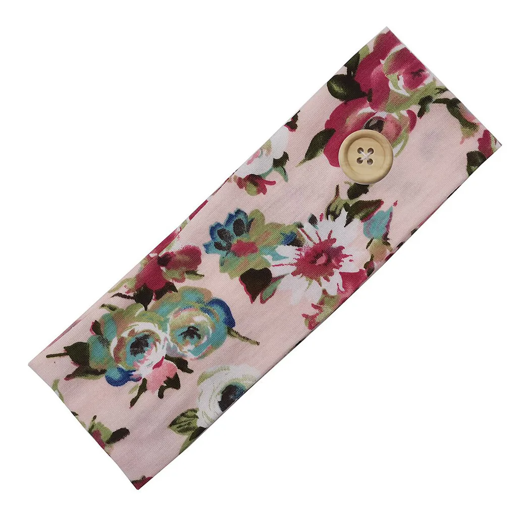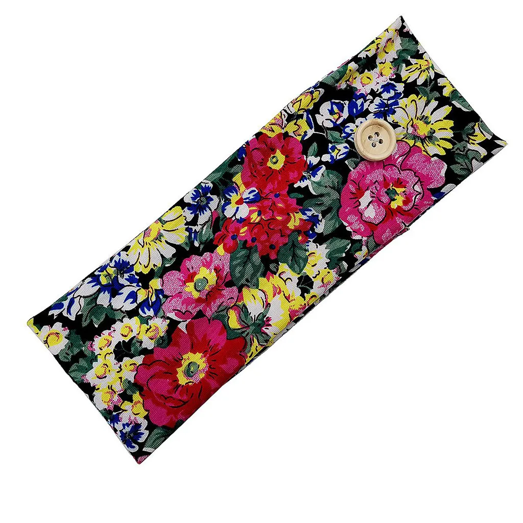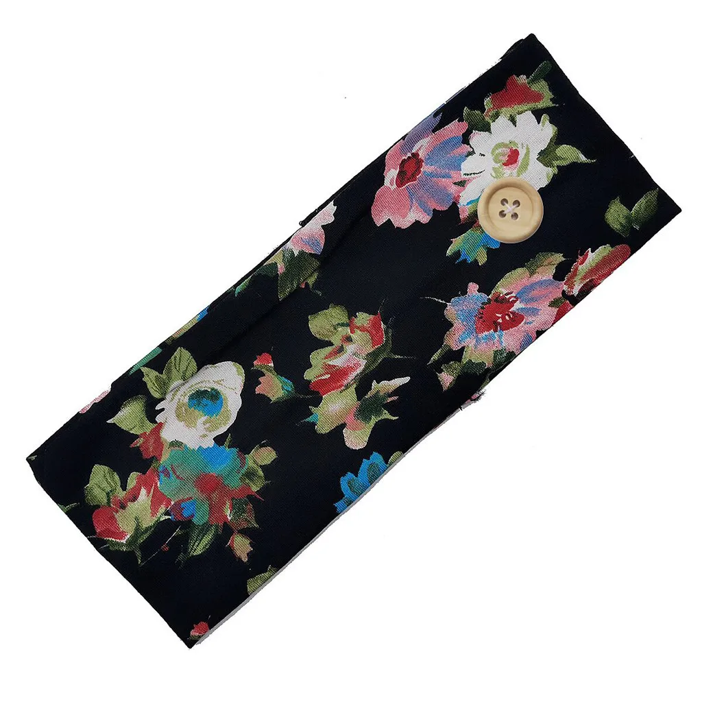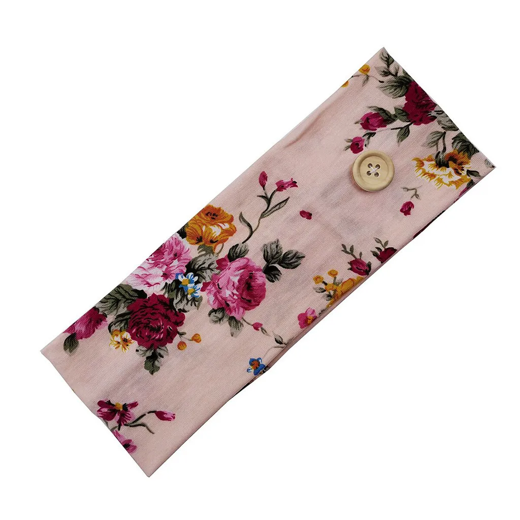 Эластичная Цветочная повязка на голову с пуговицами для йоги, тренировки, тюрбан, аксессуары для волос
