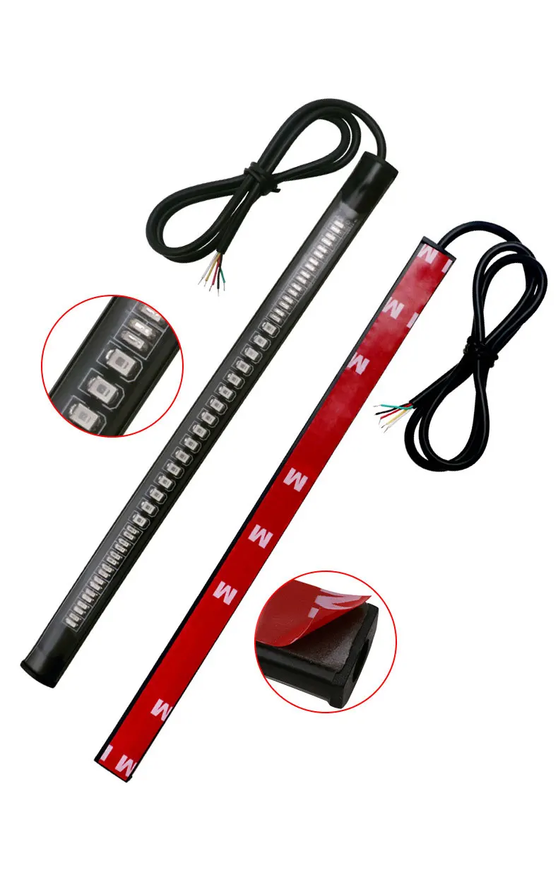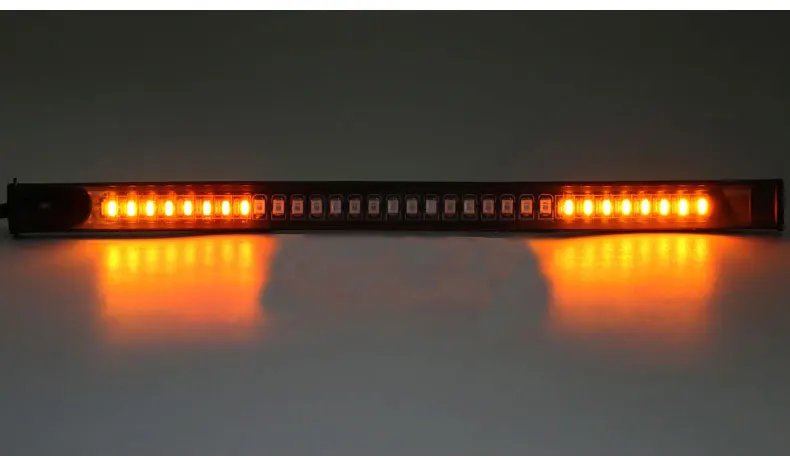 Напряжение: 11-14 В постоянного тока Материал: Поликарбонат Светодиодный чип: 48SMD Светодиодный чип: 3528SMD + 3014SMD Водонепроницаемость: IP68 Размеры: 22*1,3 см Цвет: белый + желтый Подходит для тормозной светильник и Поворотный Светильник Характеристика: Универсальный гибкий 48 светодиодов мотоциклетный светильник/задний стоп-светильник/Сигнальный светильник/светильник номерного знака. Материал: мягкая резиновая лента с 3528SMD и 3014SMD светодиодный. Место установки: светильник номерного знака. Светодиодный светильник цвет: красный для тормоза и остановки, янтарный для сигнала поворота. Количество СВЕТОДИОДНЫЙ: 48 SMD (16 Светодиодный светильник поворота, 32 светодиодный тормозной/ходовой светильник). С 3 м двухсторонняя клейкая лента, просты в установке. Черный провод для отрицательного, красный провод для красного светильник дальнего света, белый провод для красного светильник ближнего света, желтый провод для правого янтарного светильник, зеленый провод для левого янтарного светильник.