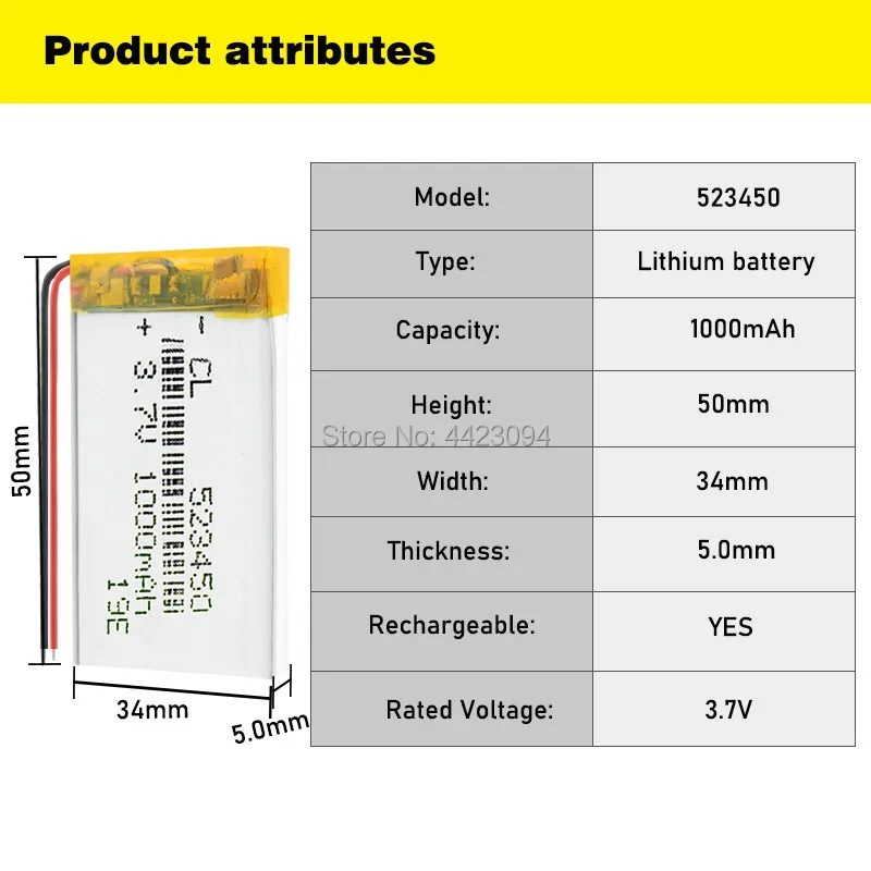![523450 3.7V 1000mAH [503450] PLIB polymer lithium ion / Li-ion battery for GPS mp3 mp4 mp5 dvd bluetooth model toy LED Lamp | Электроника](https://ae04.alicdn.com/kf/Hbd71eef74d3e465ea3041f6adf562473T/523450-3-7-1000-503450.jpg)