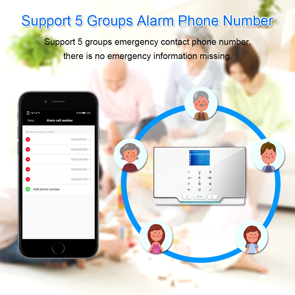 Если в вашем доме нет нестабильного сигнала Wi-Fi или Wi-Fi-маршрутизатора, вы можете использовать сеть gsm SIM-карты. * Вставьте SIM-карту GSM в G30 и сохраните номер телефона на панели. При срабатывании датчиков система сигнализации автоматически позвонит и отправит SMS на предустановленные телефонные номера, в то же время звуковую сирену.