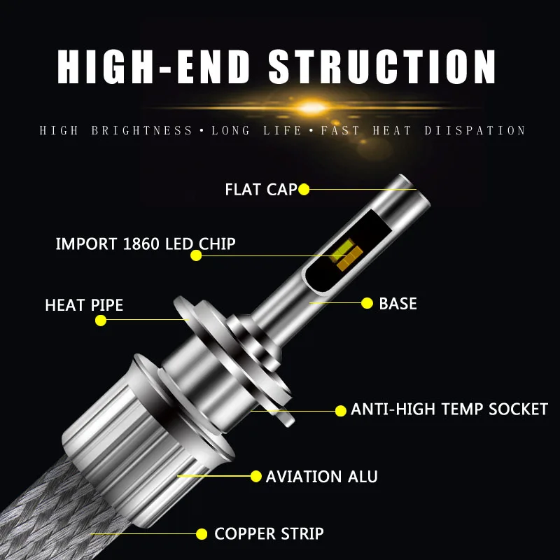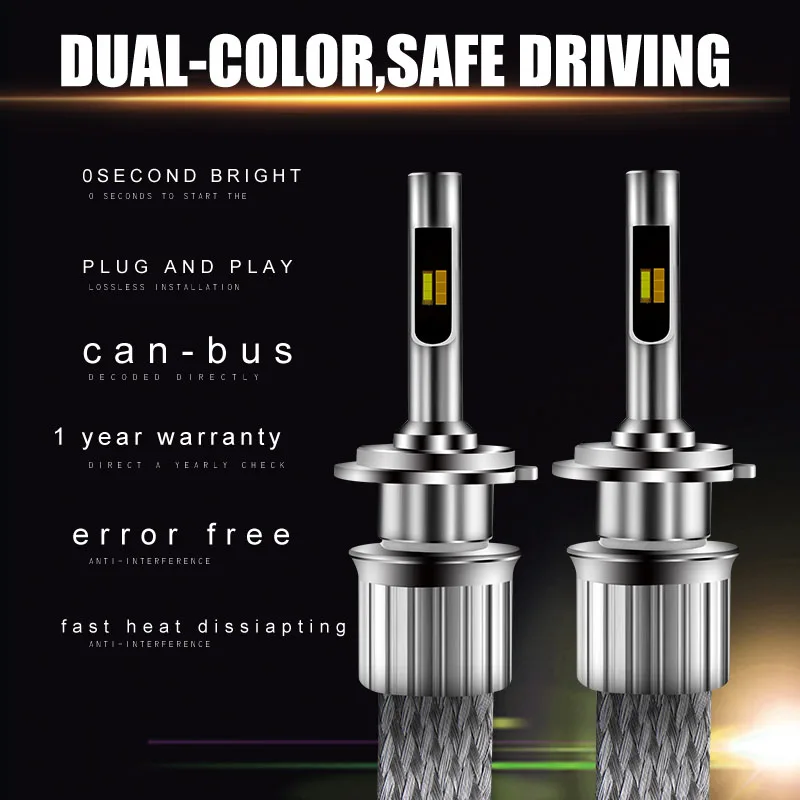 2 шт. триколор автомобиля h4 led h7 светодиодные лампы h1 h3 h8 h9 h10 h11 hb3 hb4 9005 9006 880 881 d1s d2s 90 Вт 11000lm 12V 24V Авто головного средства ухода за кожей Шеи светильник s светильник