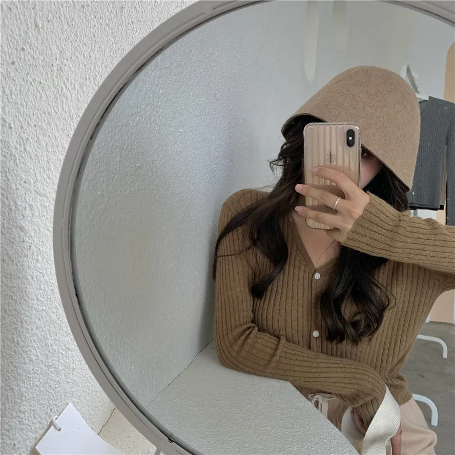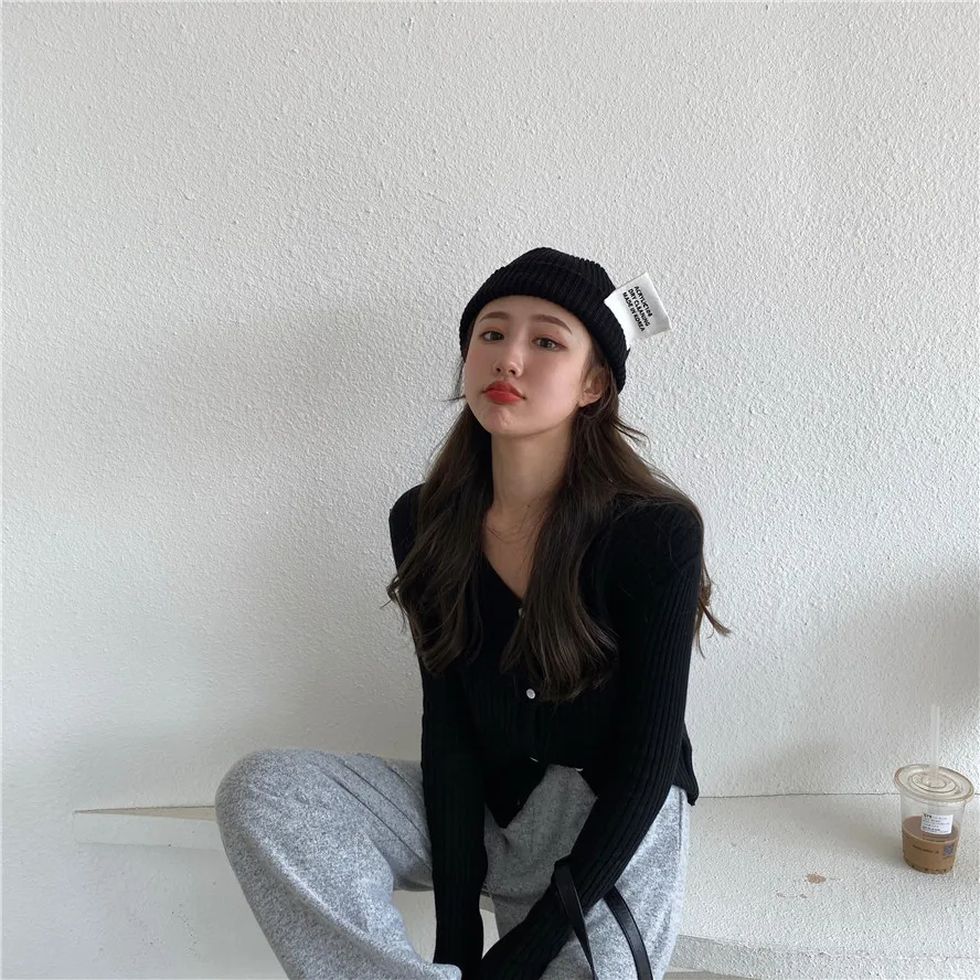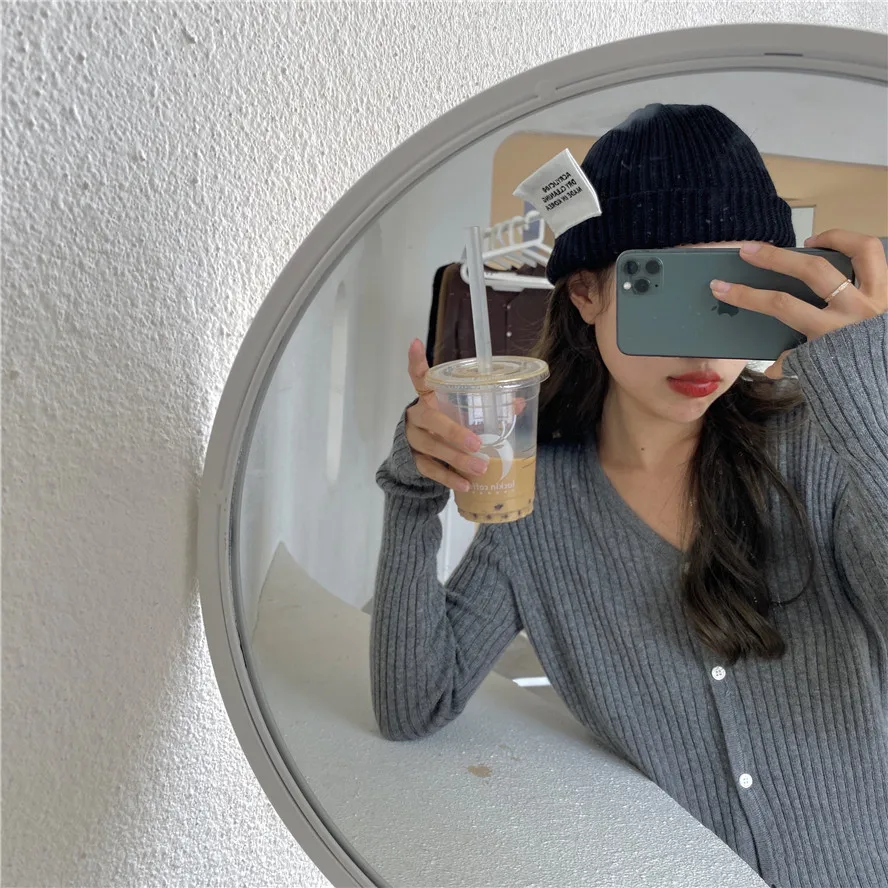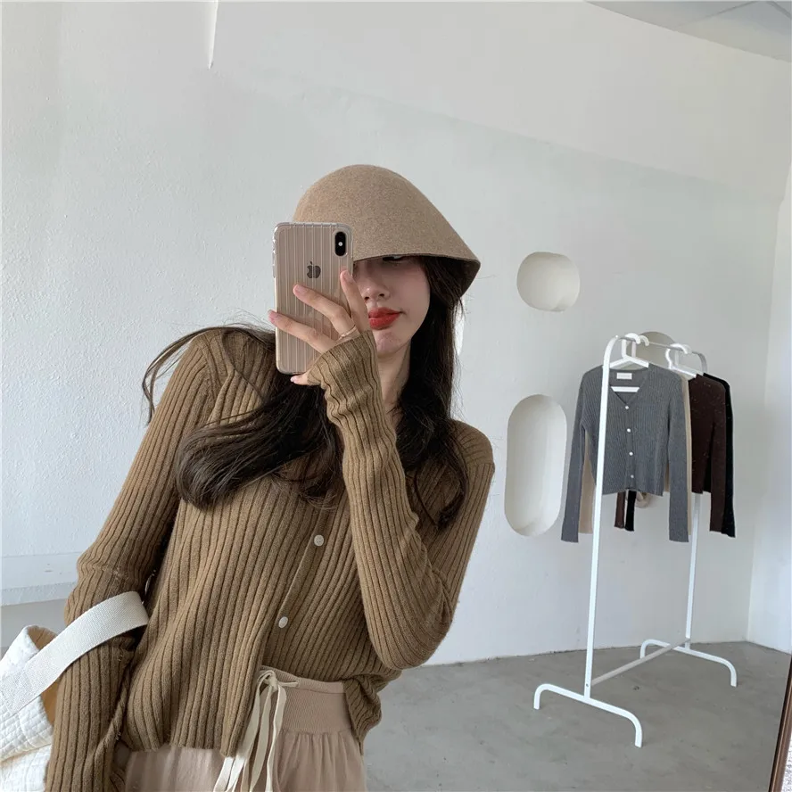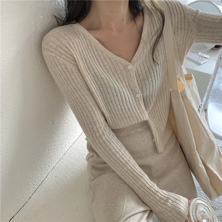 Бежевый, серый, кофейный, черный кардиган для женщин, весна, лето, осень, базовый вязаный свитер с v-образным вырезом, кардиган, корейский короткий кардиган для женщин