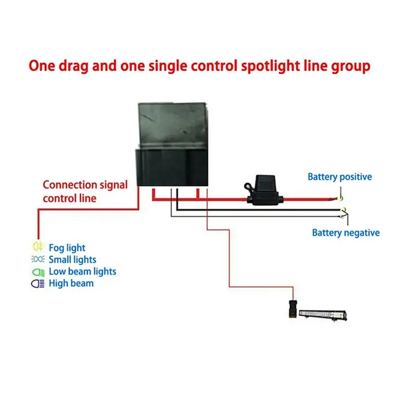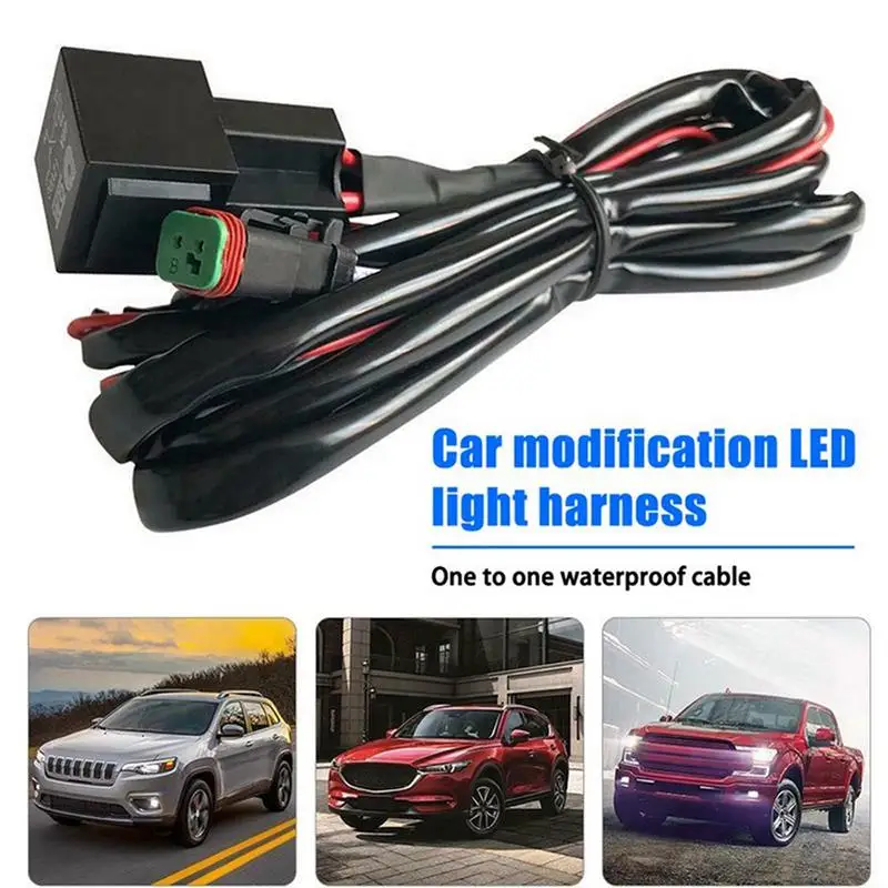 2 метра основной линии с водонепроницаемой вилкой, 50 см провод заземления и 100 см красная сигнальная линия; Красная сигнальная линия может быть подключена к противотуманный светильник, небольшой светильник, светильник ближнего света или светильник дальнего света, удобный для установки на светильник с переключателем управления;