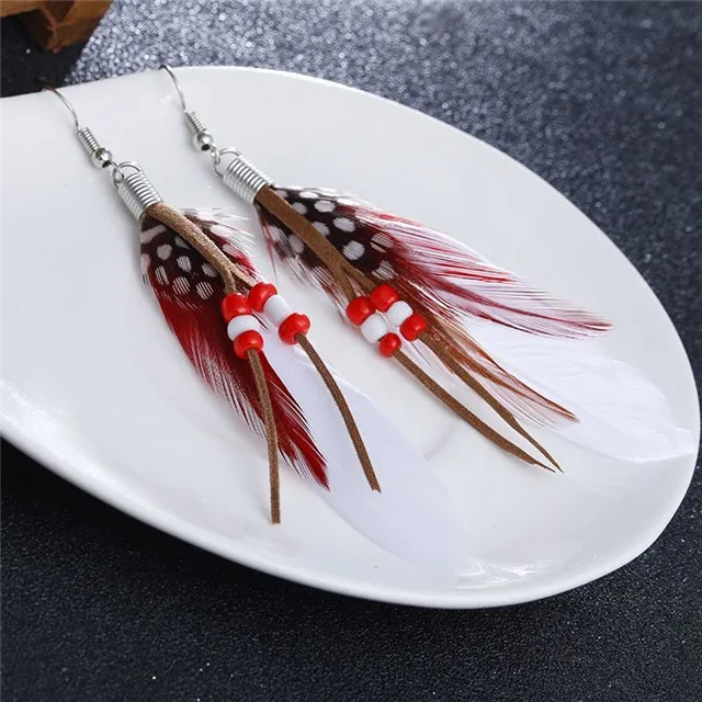 Горячая Распродажа богемные винтажные Летние Стильные перьевые Висячие серьги для женщин/девушек модные красочные серьги с бисером ювелирные изделия