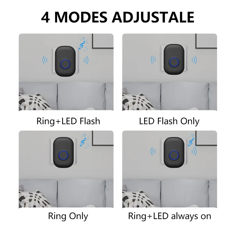 • Привлекающая внимание подсветка мигает, когда кто-то нажимает на дверной звонок. Особенно подходит для пожилых, глухих и беременных женщин.