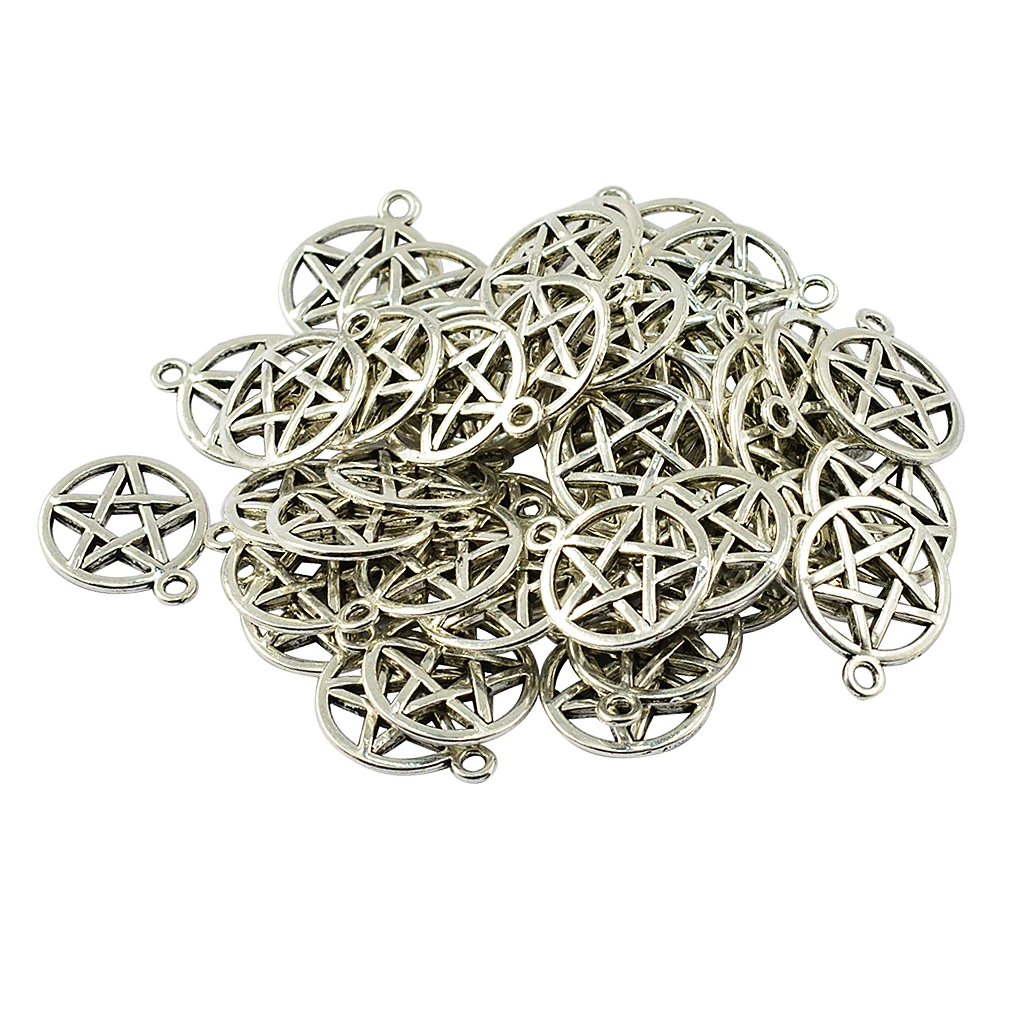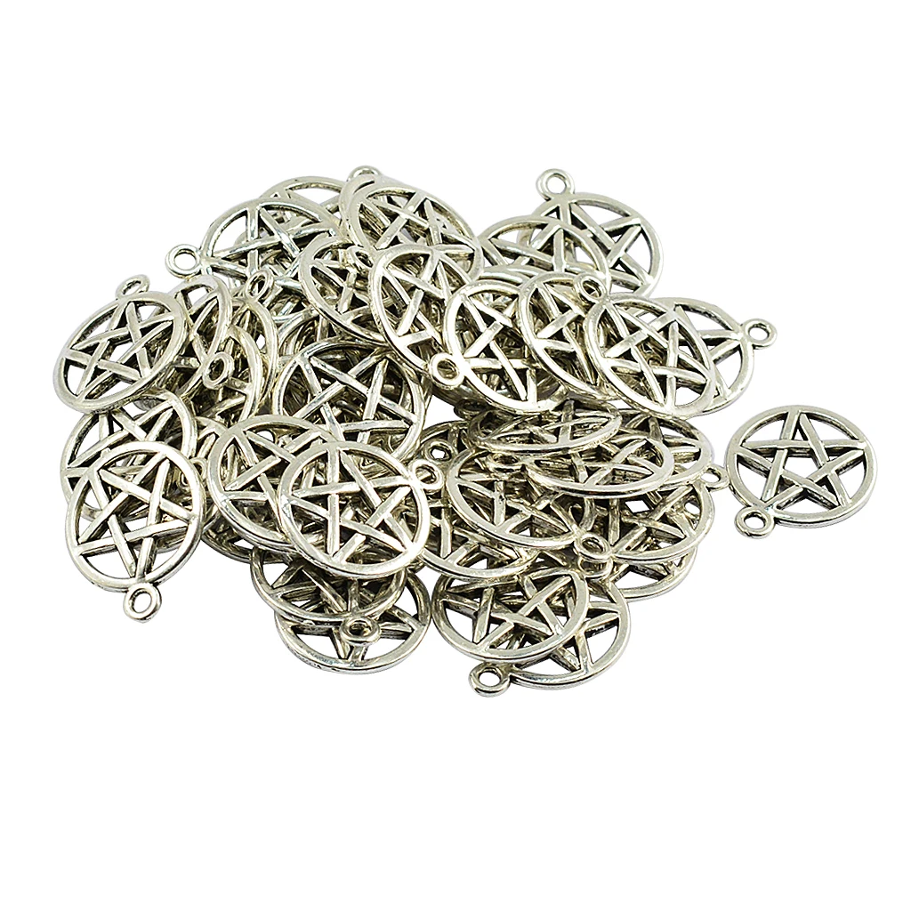 50 шт., тибетское серебро круглая звезда Pentacle Очаровательная Подвеска Бижутерия