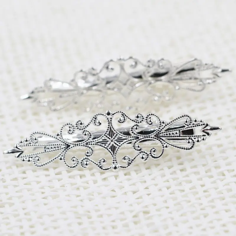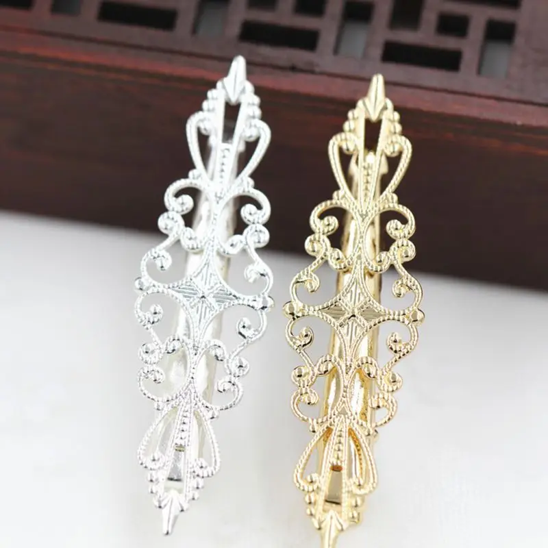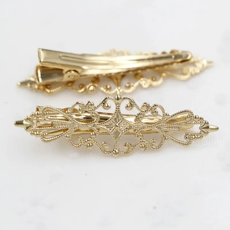 Металлические сплав винтажные клипсы Утконос, геометрические выдолбленные Цветочные короны в форме, Металлические Блестящие однотонные, элегантный дизайн резьбы.