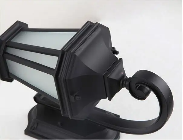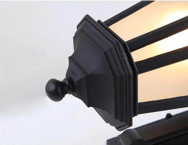 Material: aluminum alloy + frosted glass Light source: E27 (bulbs donot include) Space: 5-8m² Size:A type 34*21*14cm B type 53*34*25cm Application: Outdoor courtyards, balconies, open plazas, aisles, doorways, villas, stairs.