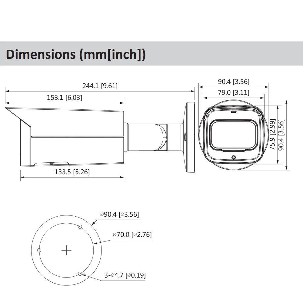 Dimensions: 244.1 mm × Φ90.4 mm (9.61" × Φ3.26")