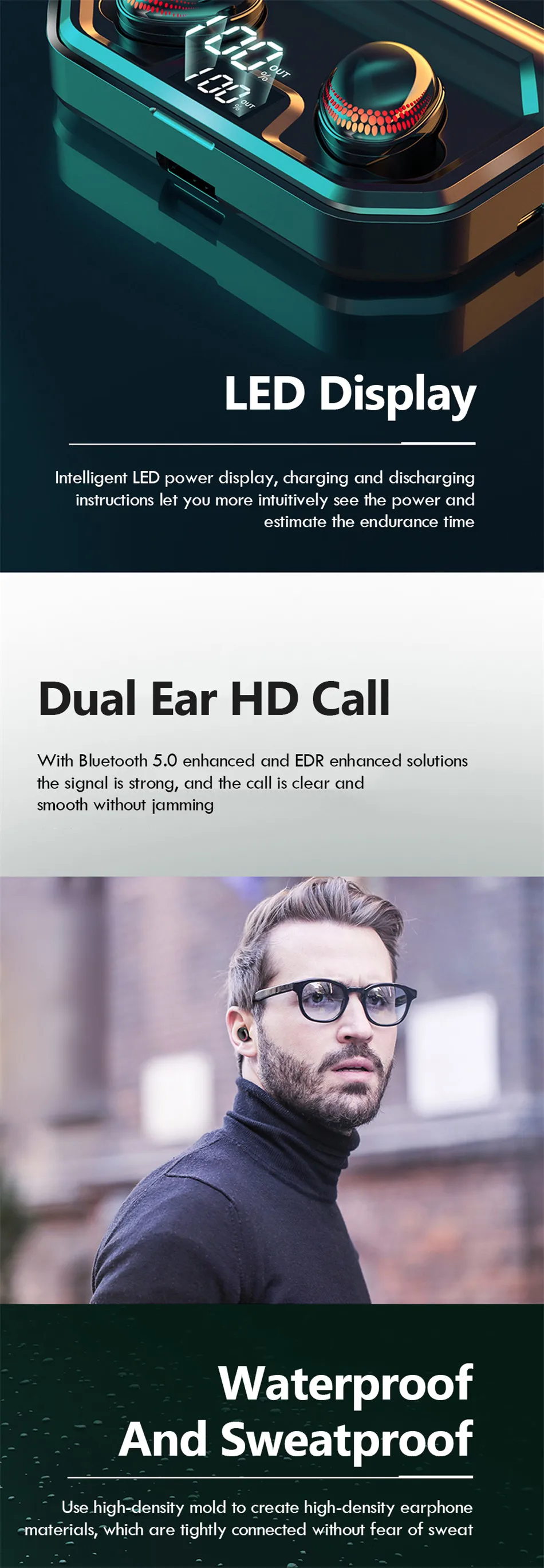 2020 новые TWS Bluetooth 5,0 9D HIFI наушники беспроводные наушники IPX7 водонепроницаемые наушники 3000 мАч светодиодный дисплей шумоподавление Гарнитура