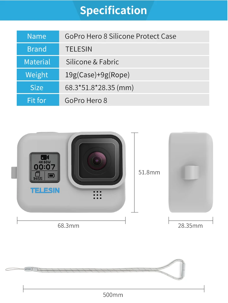 1.TELESIN Silicone Case provides full protection for GoPro Hero 8.