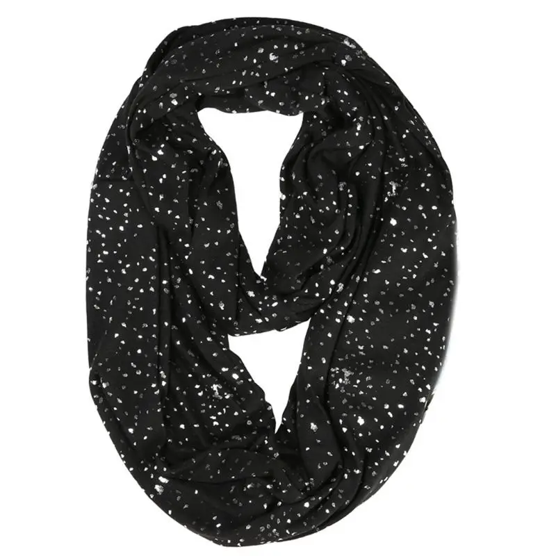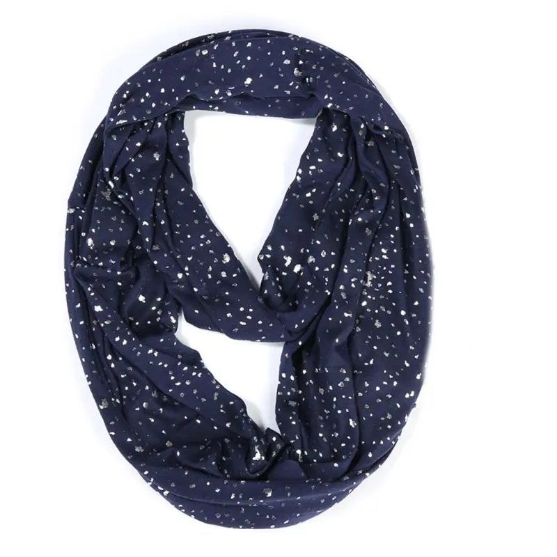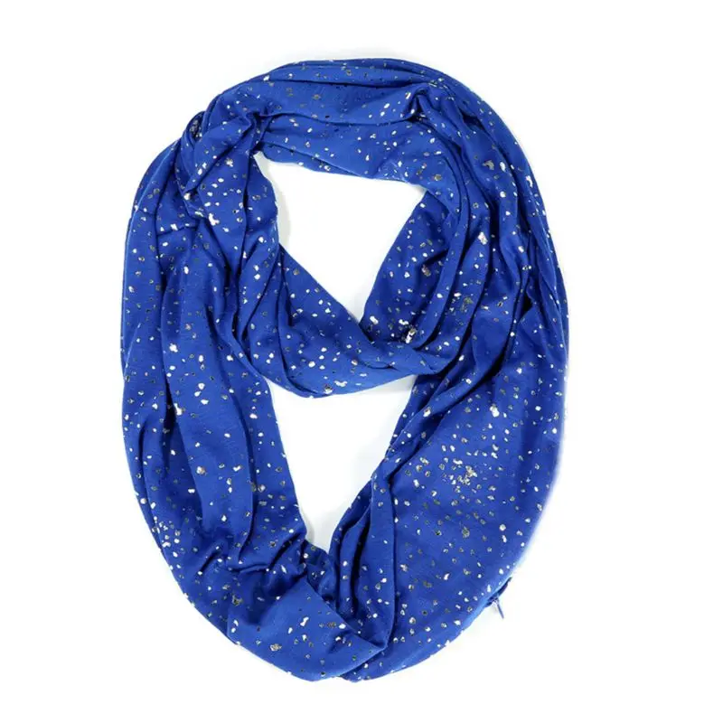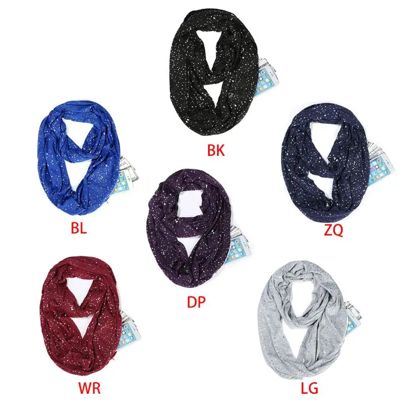 Сплошной цвет, ультра-длинный бесконечный петлевой шарф, Блестящая серебряная фольга с блестками, с застежкой-молнией со скрытым карманом.