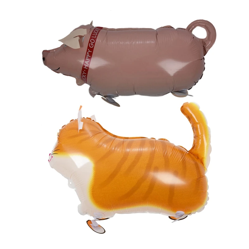 2 шт. воздушный шар с животными: 1 шт. светильник с оранжевой кошкой и 1 шт. светильник с розовой Свинкой