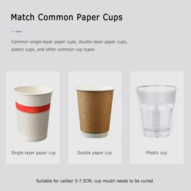 Подходит для обычных бумажных стаканчиков: однослойный бумажный стаканчик, двухслойный бумажный стаканчик, пластиковый стаканчик